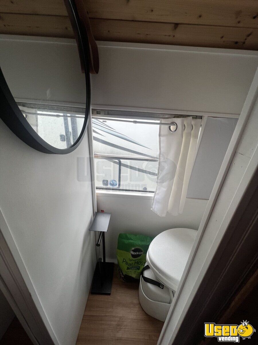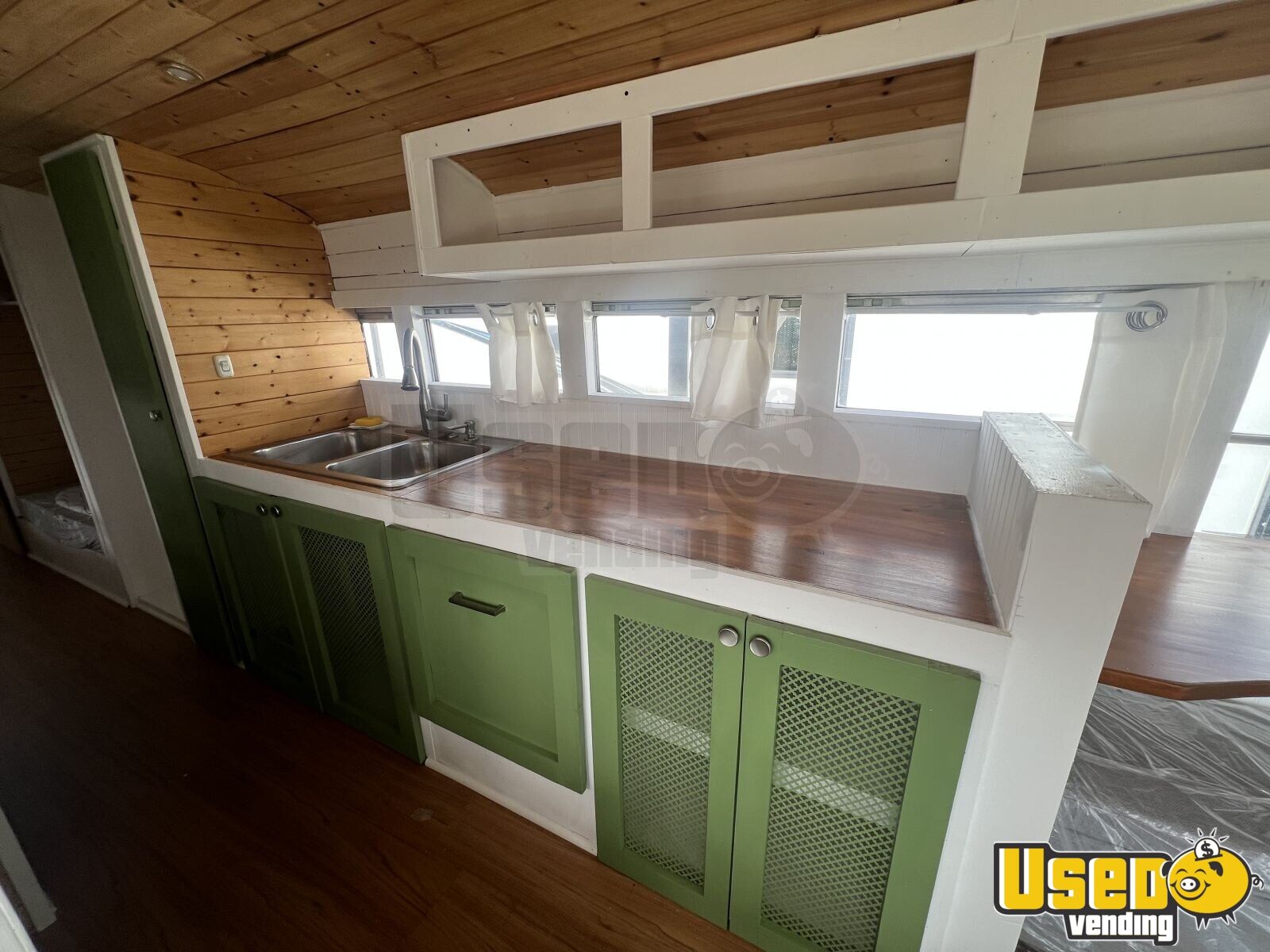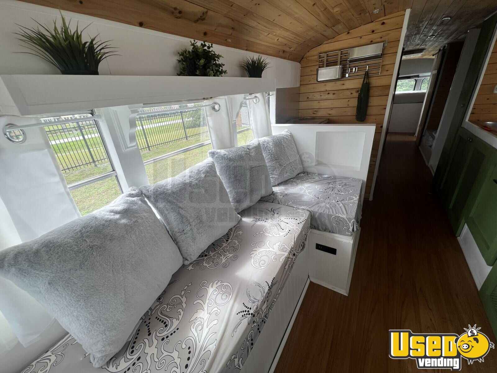 This unit is outfitted with a 50-amp electrical system with an inverter hooked up for AC/DC power, it functions like a more traditional home but with the excitement of a traveling vardo! The bus is equipped with two 40-gallon fresh water tanks, one 60-gallon grey water tank in the back for the shower, and one 25-gallon grey tank for the kitchen sink. The bus also features a drainage line for the holding tanks that have functioning gate valves and make more traditional living or camping that much easier.