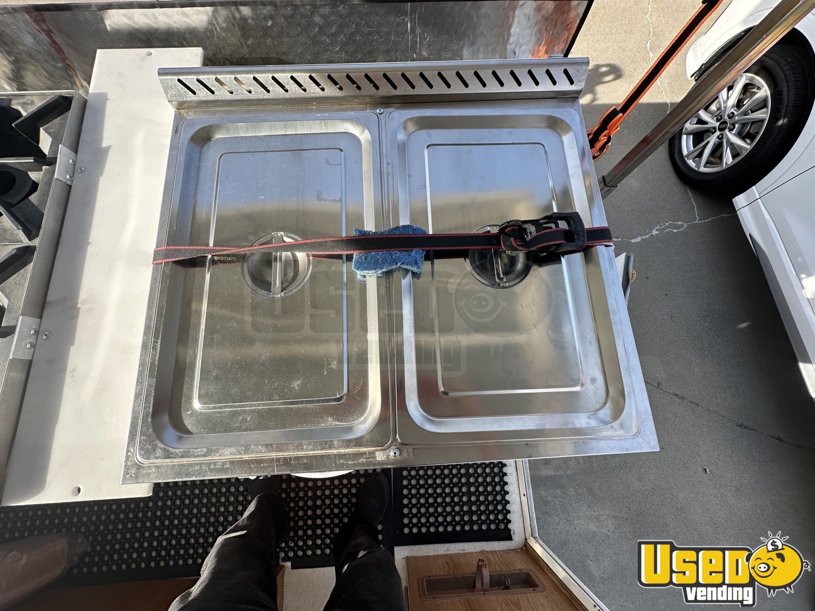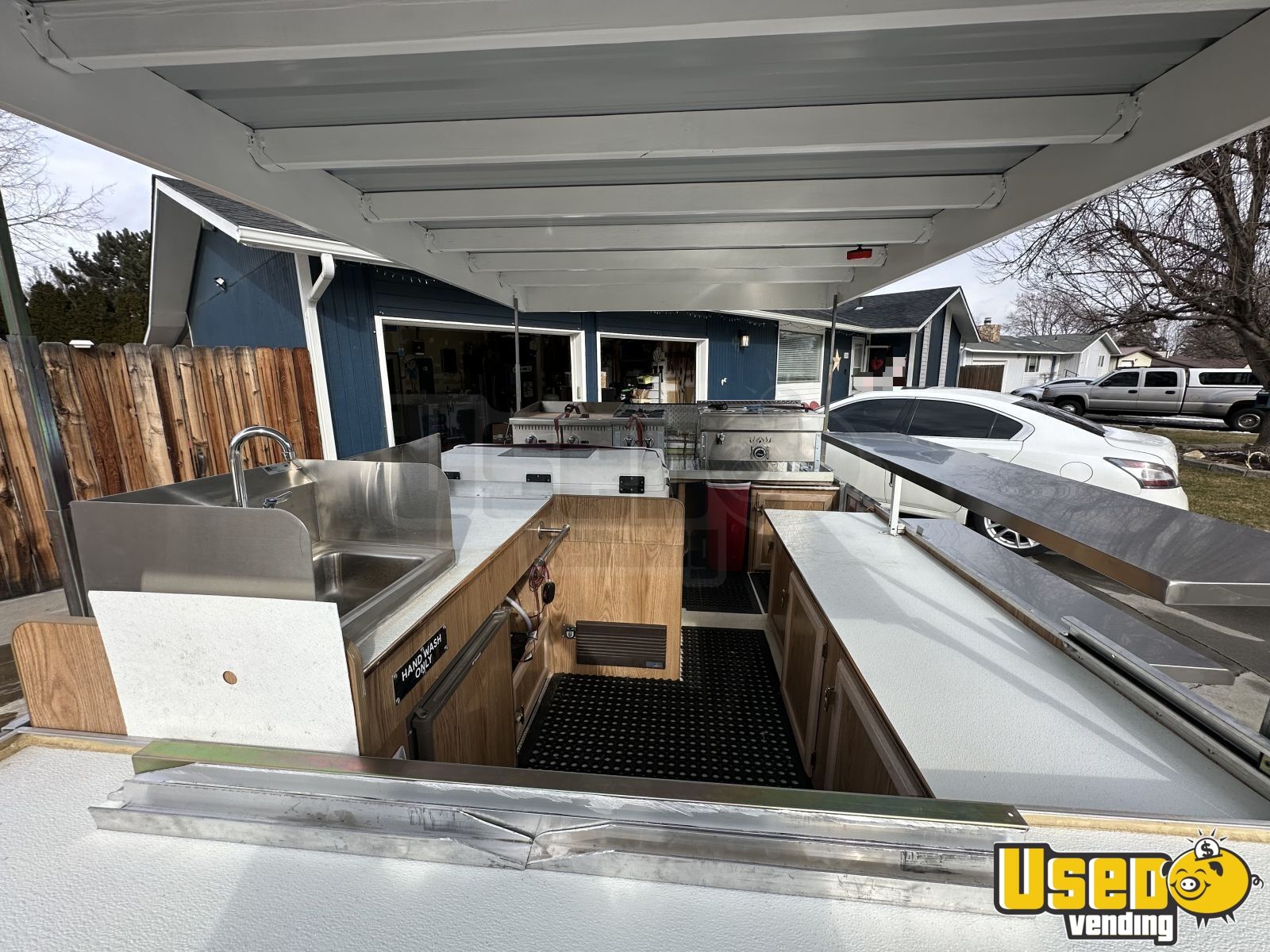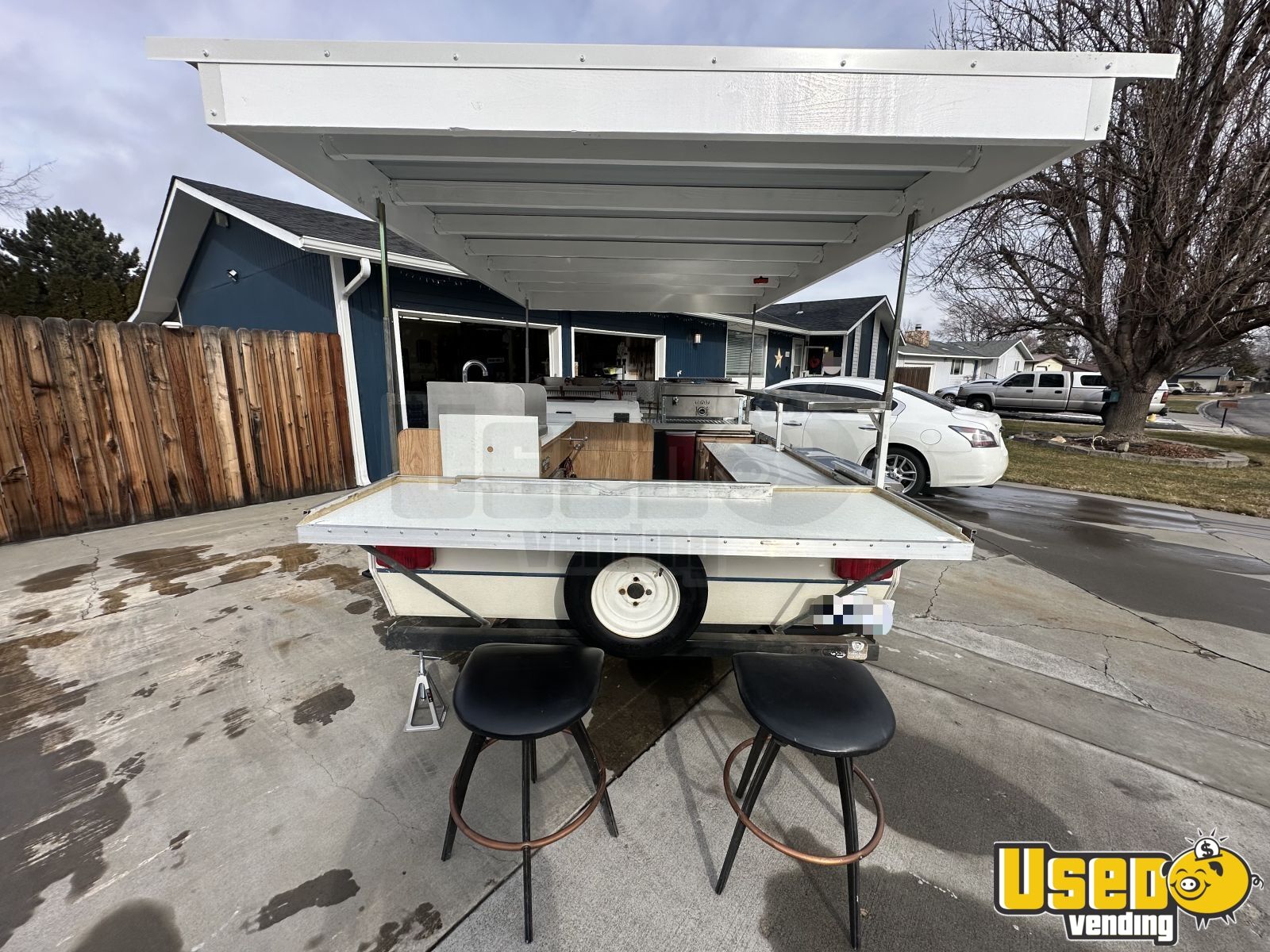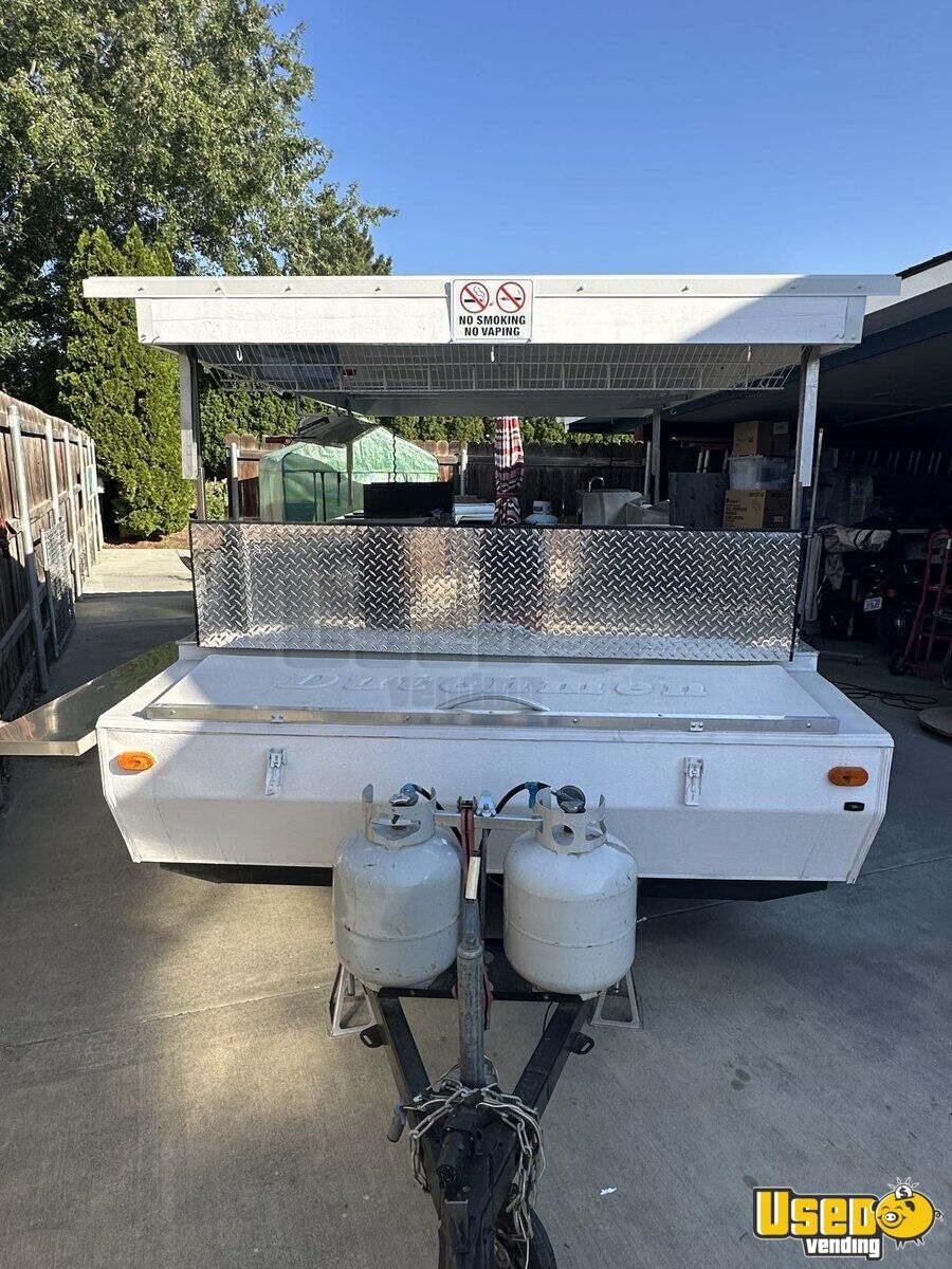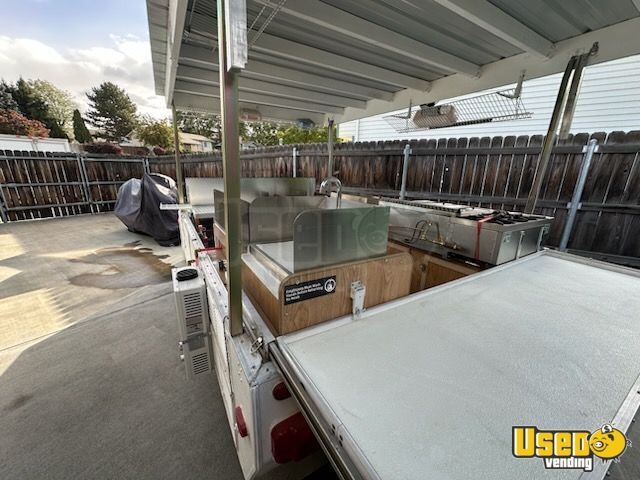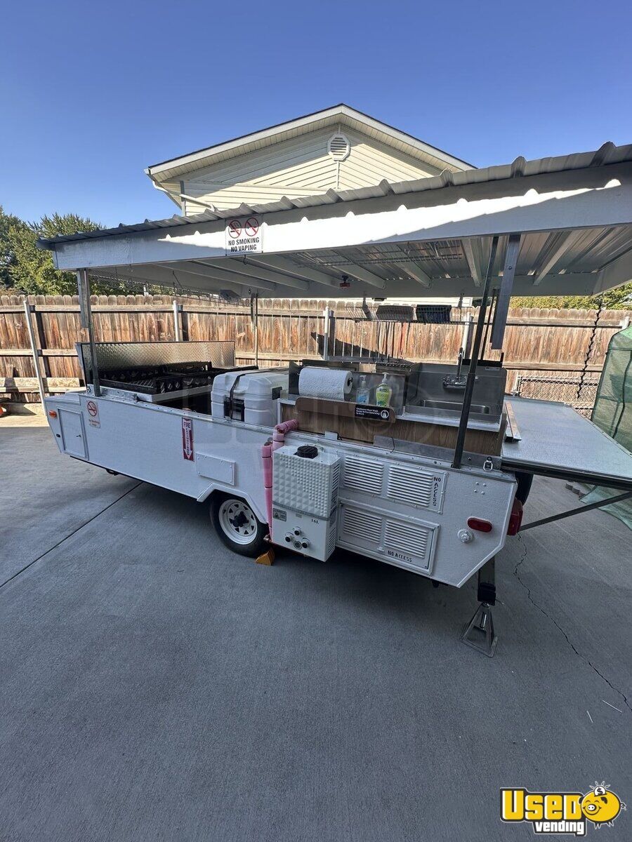 This converted pop up tent trailer is equipped with NSF restaurant grade equipment, making it a compact yet powerful mobile kitchen. Designed for efficiency, it offers a functional workspace while maintaining a lightweight and mobile setup. Interested? Call now!