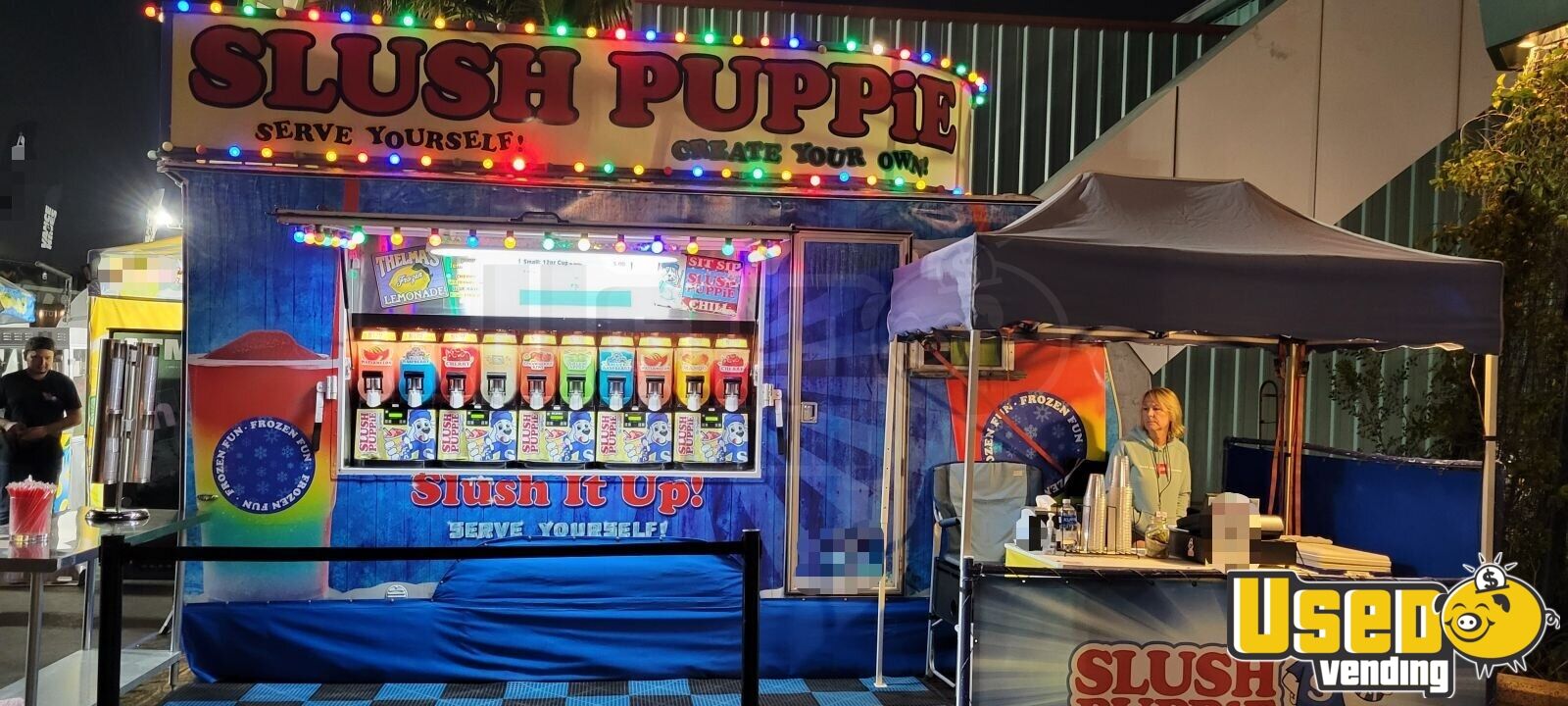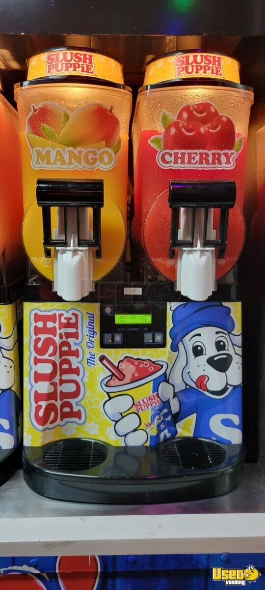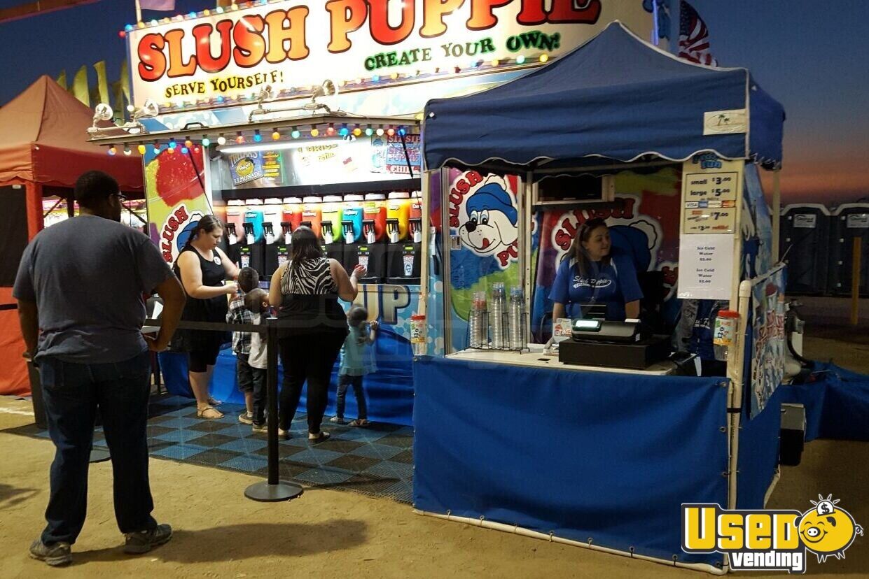 Serve delicious slushies using this frozen beverage / Slush Puppy vending trailer! With it's colorful and classic looks, you'll have customers lined up. It has 5 slushie machines, so you can serve up to 10 different flavors fast. Call today!