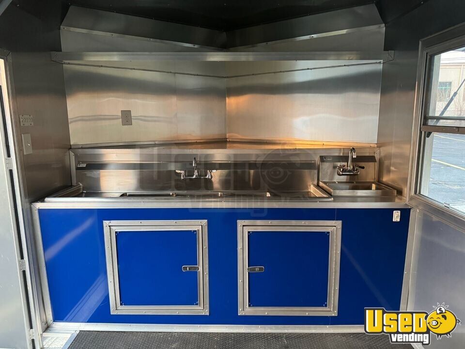 This concession trailer can be plug-in or generator-powered. It has custom ventilation for the grill and it is up to code. Perfect for starting a mobile restaurant.
