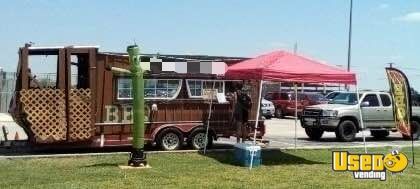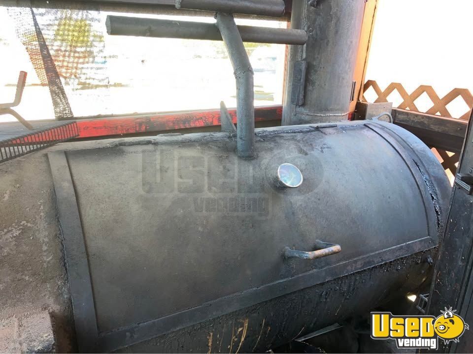 This barbecue food trailer offers essential features for mobile cooking operations. It’s equipped with functional plumbing, refrigeration, and a built-in BBQ pit, making it a ready to use setup for outdoor catering or street food service. Interested? Call us now!