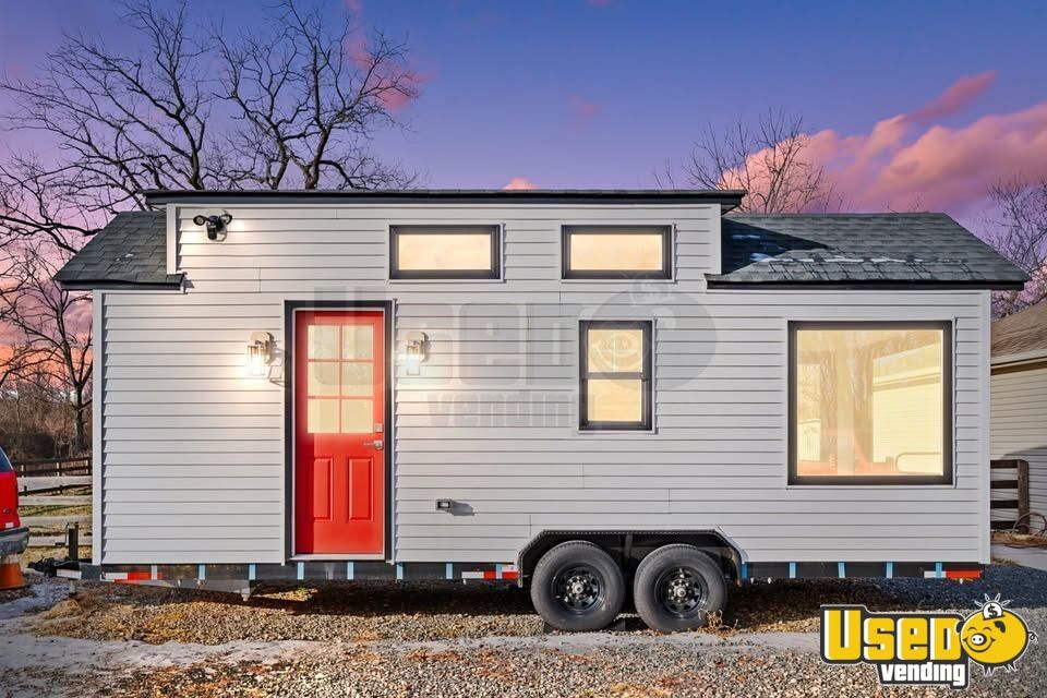 Built on an 8' x 24' trailer in excellent condition, the home is securely attached using structural rods drilled through the trailer frame and double Loctite-nutted, with Simpson structural ties used throughout. Ice and water shield was installed beneath the roof for added protection.