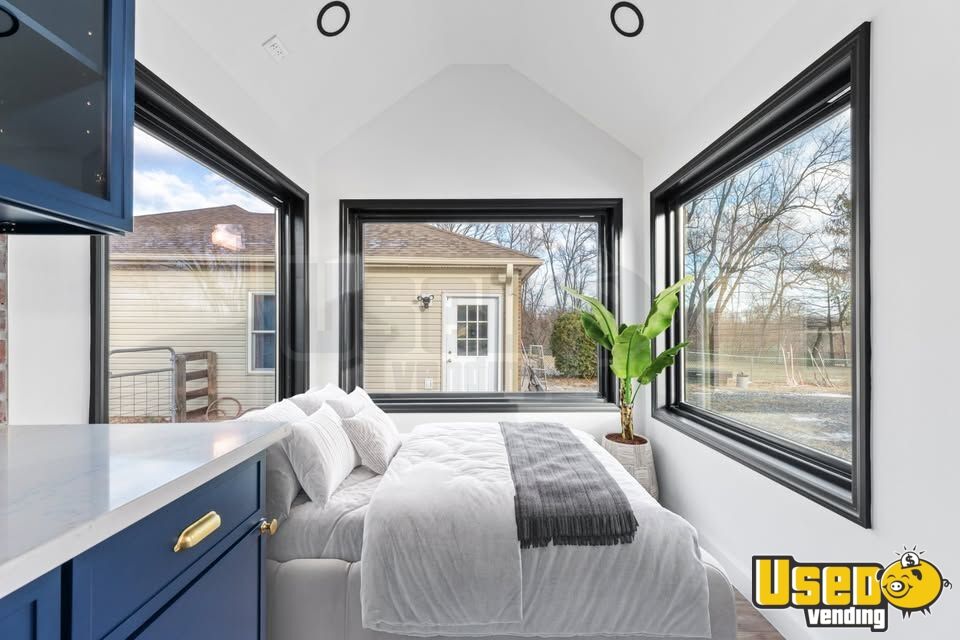 Design & InteriorApproximately 166 square feet of interior living space is elevated by rare vaulted ceilings and carefully placed windows that create volume, light, and openness far beyond what’s typical in a tiny house on wheels.
