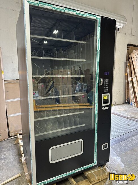 Zensong Glass front snack vending machine for sale. Brand new, never used vending machine, comes with three keys! Has minor dents on the side. Never programmed.