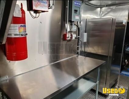 - Stainless steel walls, diamond-plated flooring, and exterior counters