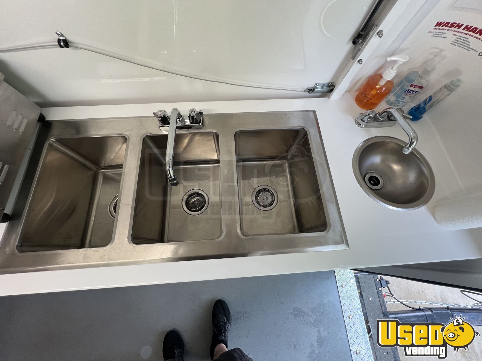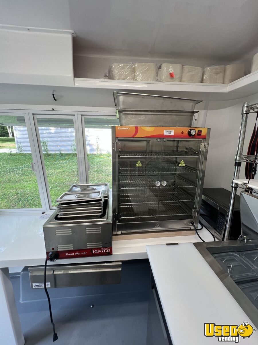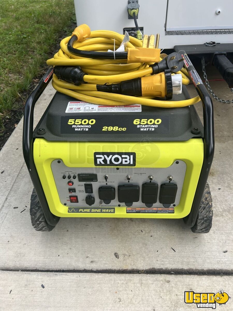 This 2022 Food Trailer offers a dependable and efficient mobile kitchen solution. Built with durable fiberglass, this turnkey trailer is in good condition and ready for immediate operation, featuring dual awnings, full plumbing, and electrical systems powered by a reliable generator.