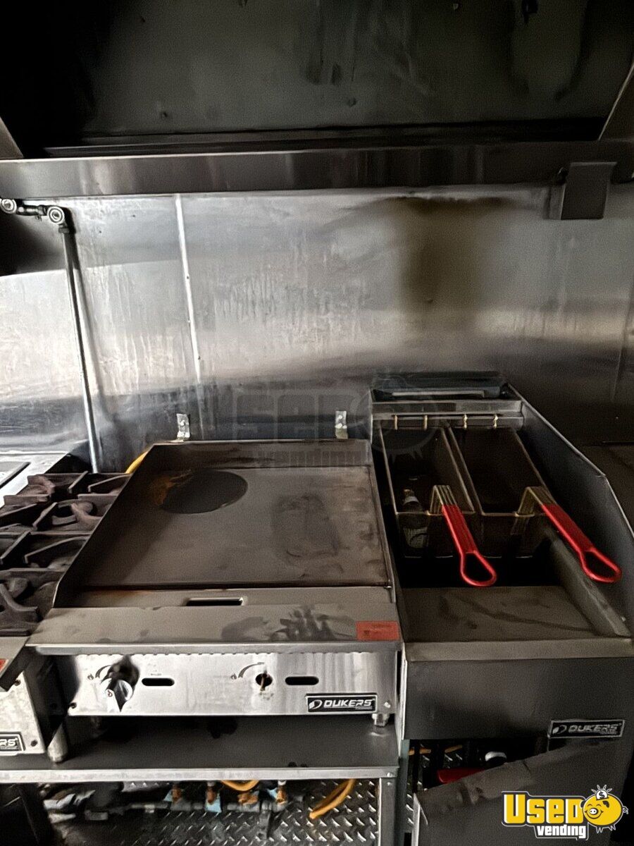• Flat-top grill, dual fryers, stovetop, and prep cooler