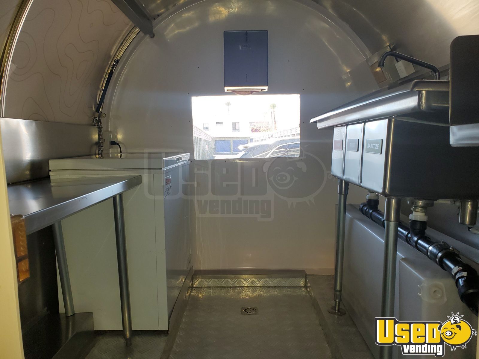 - Stainless prep tables and fold-down customer counter