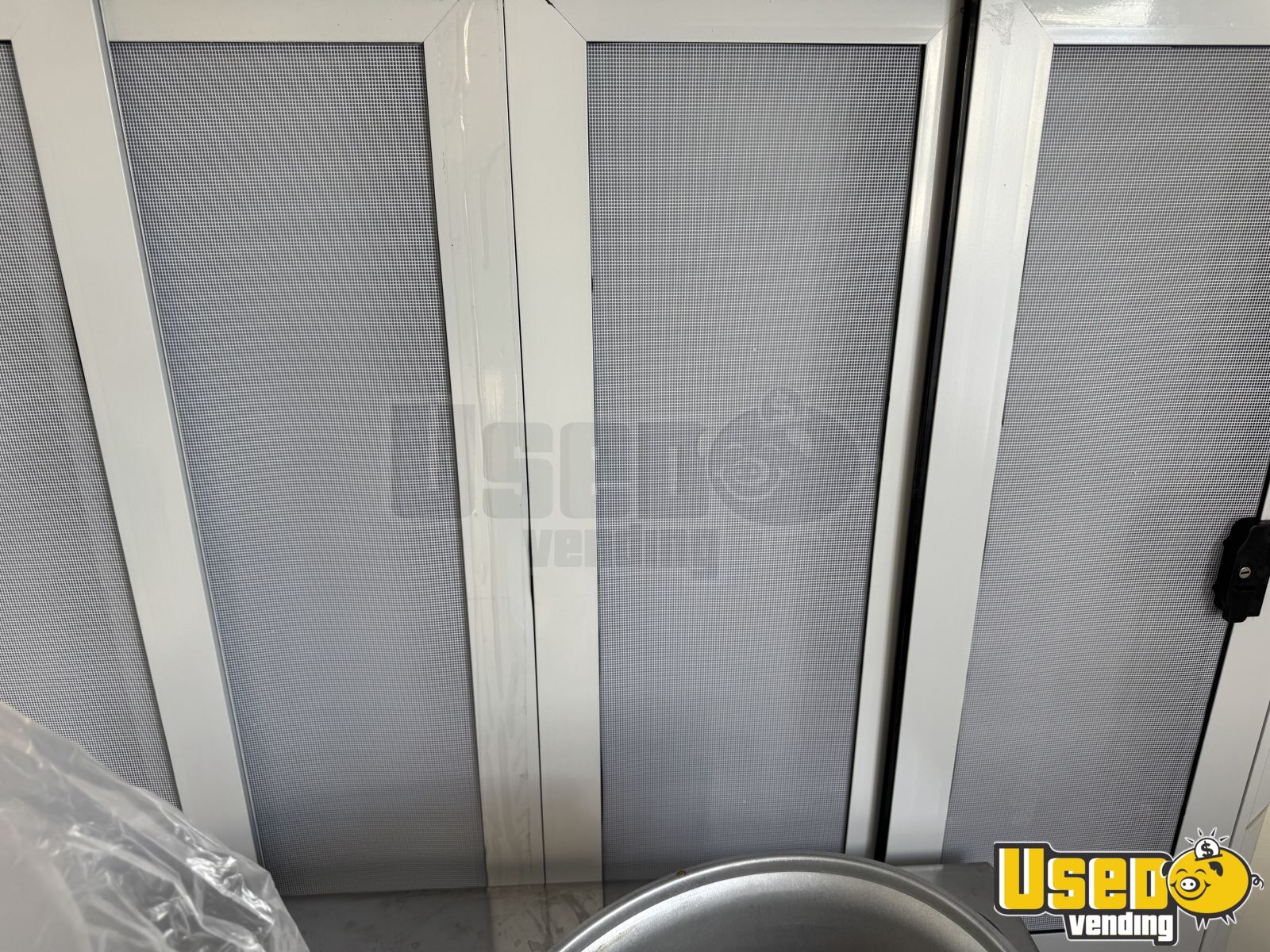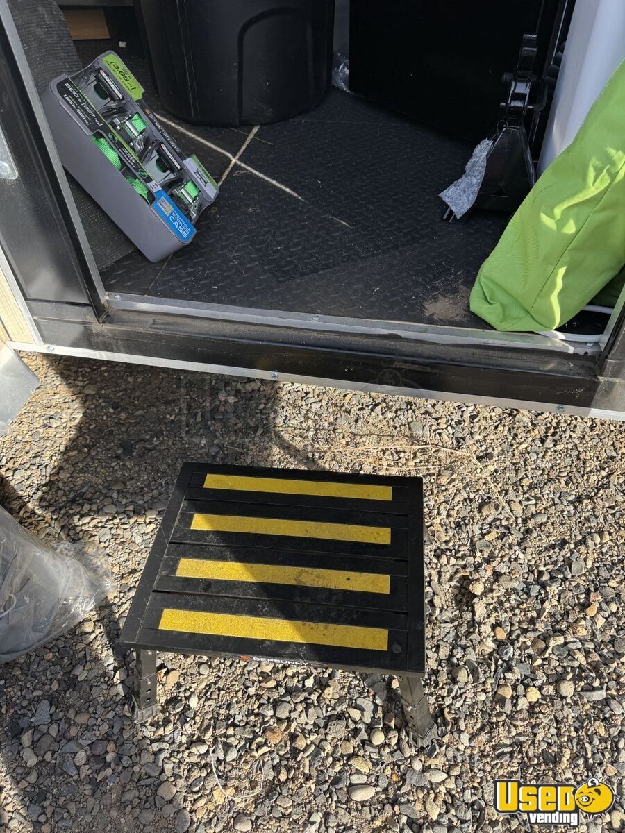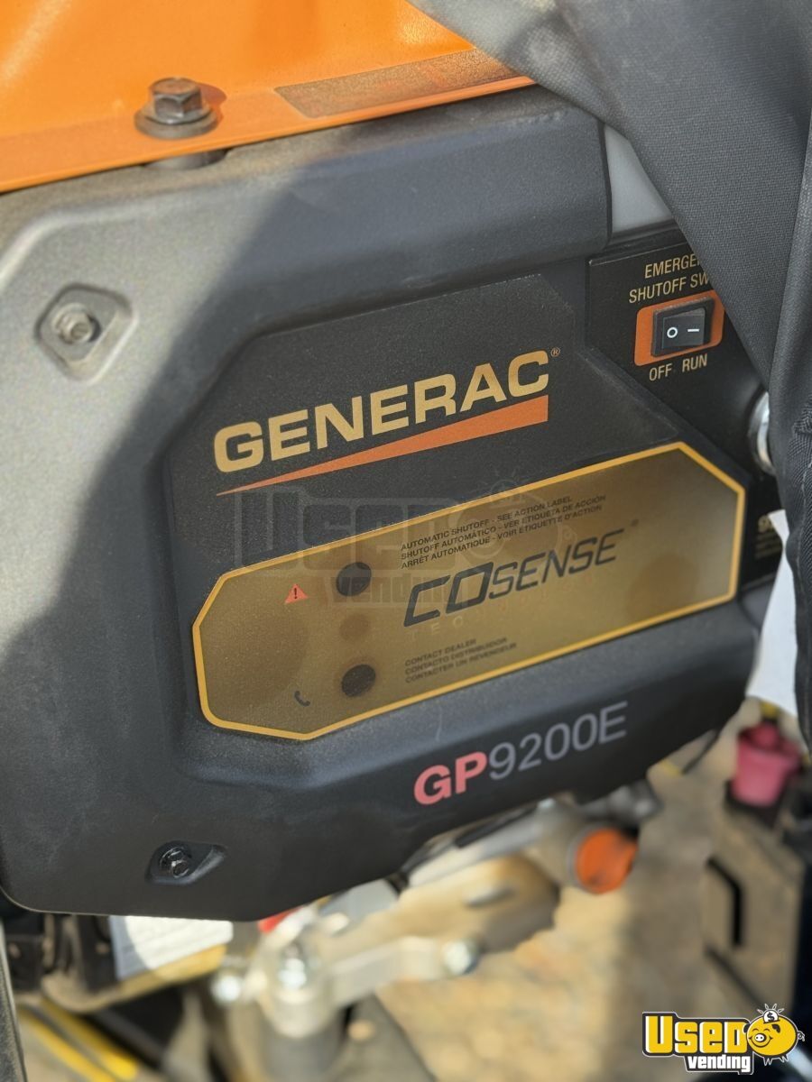 Standout attributes include: - Generac 2500 generator with multiple outlets - Air conditioning and interior/exterior lighting - Stainless wall covers and 40" hydraulic service window with screens - Coffee machine, refrigerator, and Coleman ice chest - NSF work tables and storage racks - POS system and stabilizer supports
