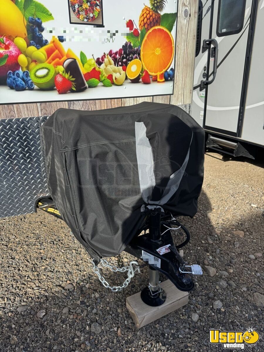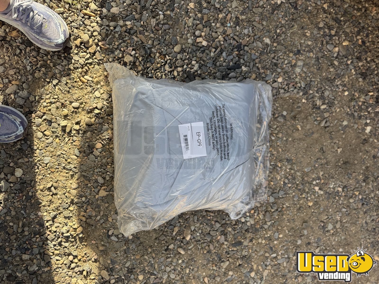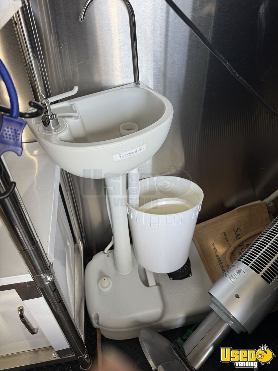 Standout attributes include: - Generac 2500 generator with multiple outlets - Air conditioning and interior/exterior lighting - Stainless wall covers and 40" hydraulic service window with screens - Coffee machine, refrigerator, and Coleman ice chest - NSF work tables and storage racks - POS system and stabilizer supports