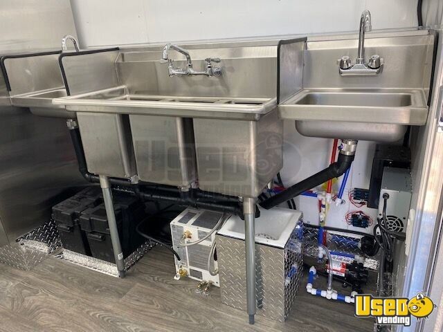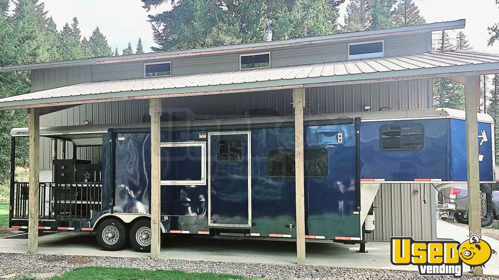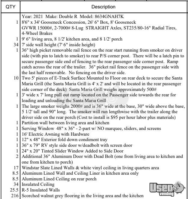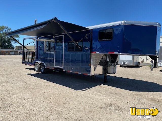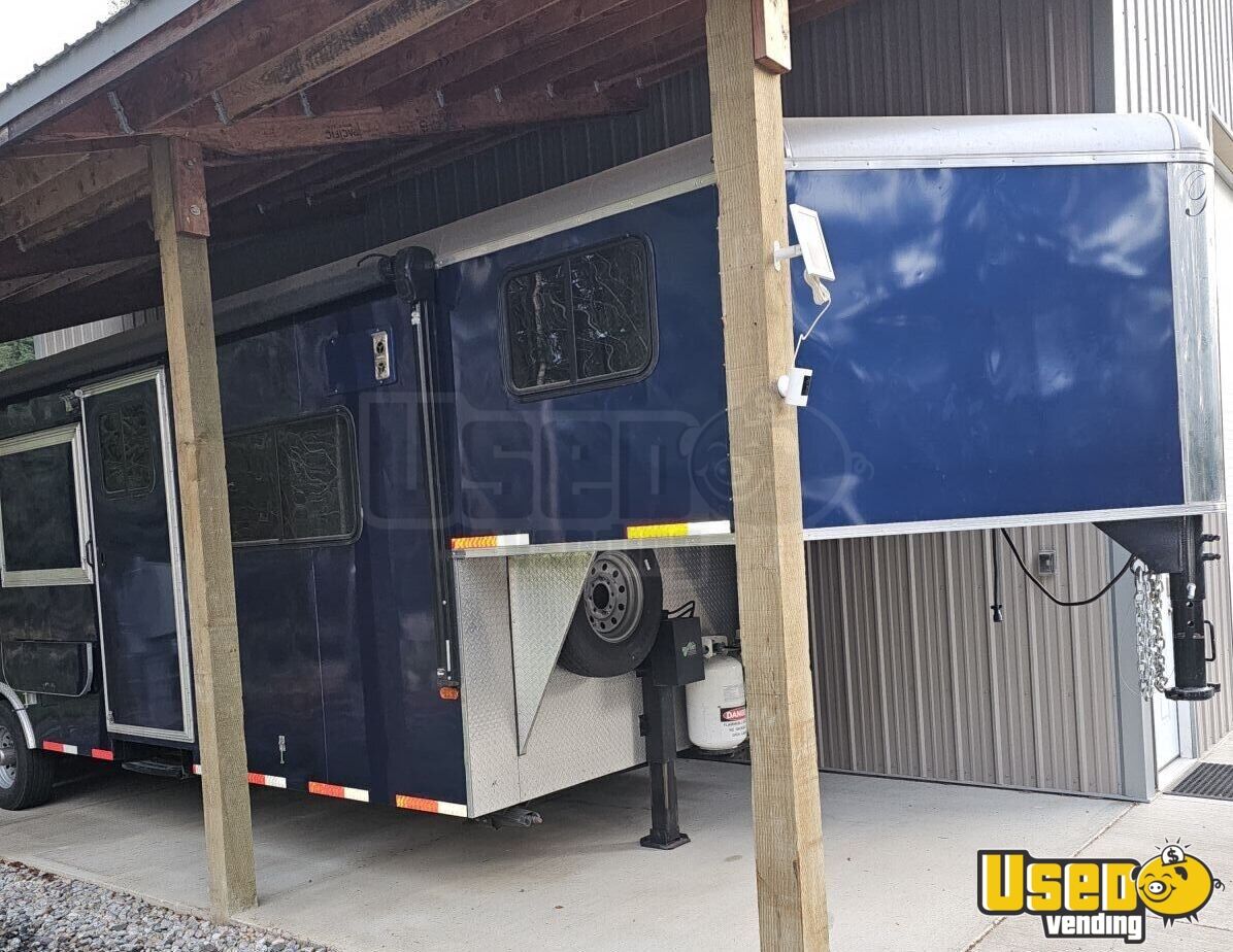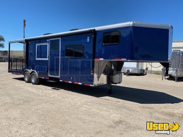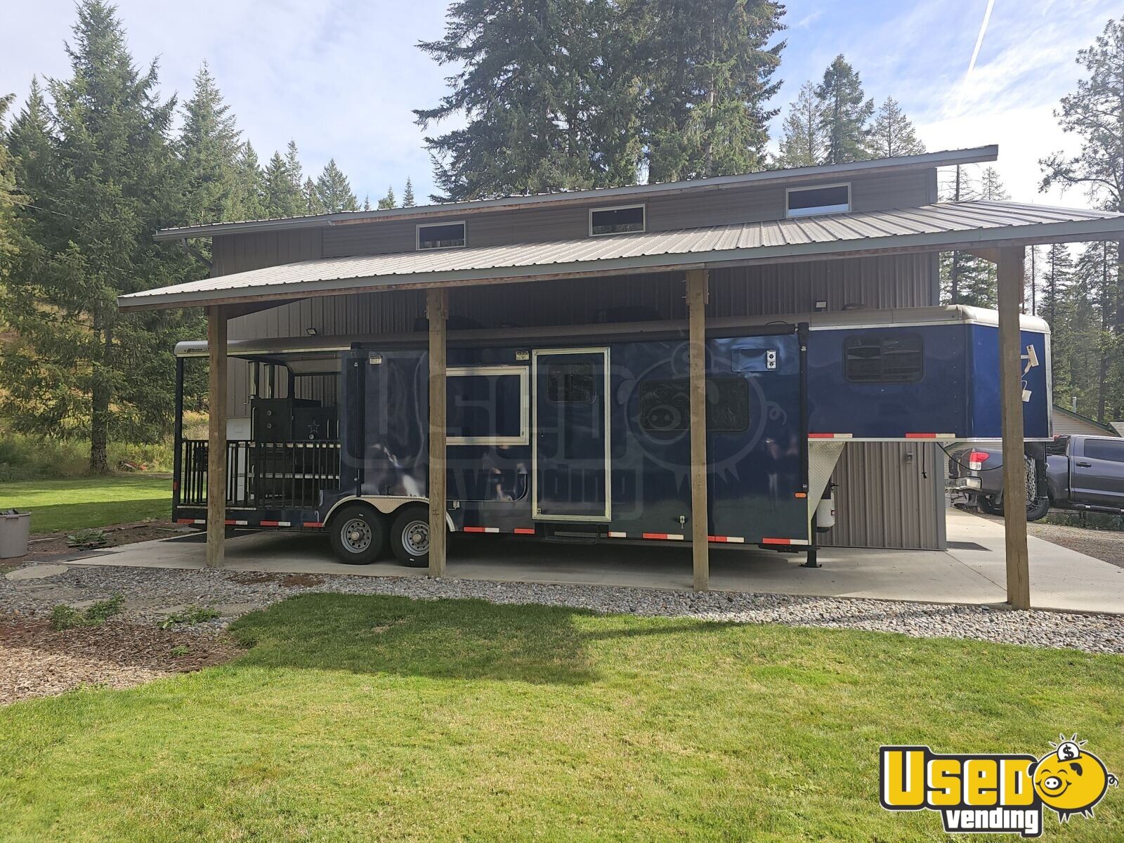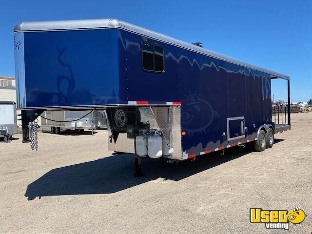 Here's a spacious gooseneck concession trailer that's designed to meet all of your needs, whether you're catering multi-day events, or going to competitions! It's more than a trailer; it's your mobile business and home away from home. Trailer and smoker are both custom built professionally. Kitchen is loaded. Call today!