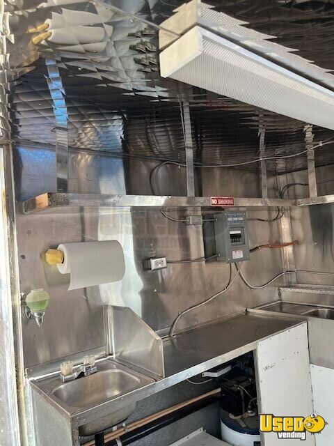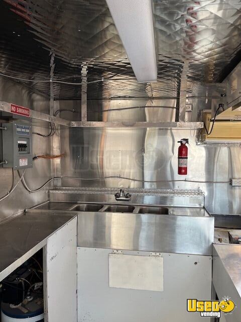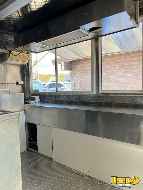 This custom built stainless steel concession trailer offers a dependable setup. Compact yet efficient, it features serving windows on both the front and end, making customer service smooth and convenient. Interested? Call us now!