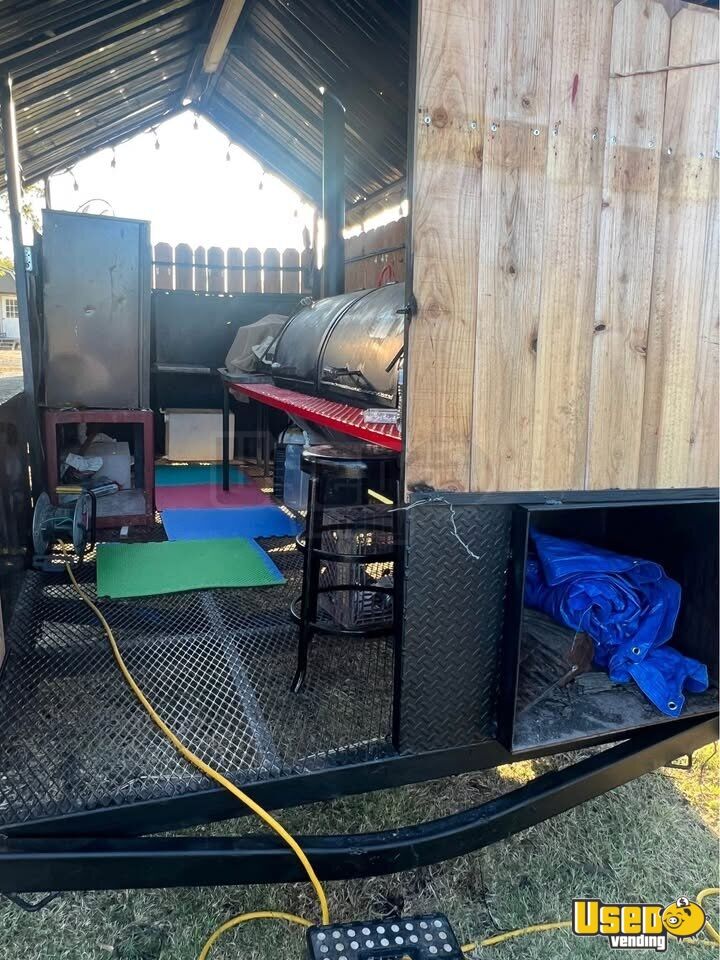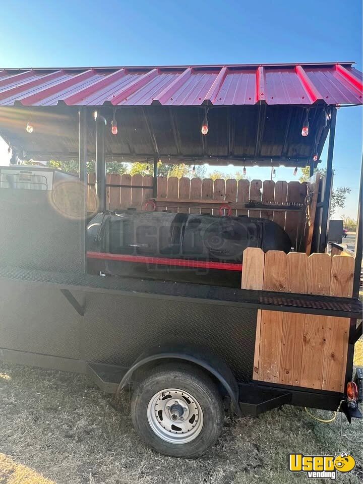 This open BBQ smoker trailer offers a setup for grilling, frying, and serving a variety of dishes. Lightly used for eight months, it includes key features such as sinks, a smoker, and a refrigerator—all in great working condition and ready for service. Interested? Call us now!