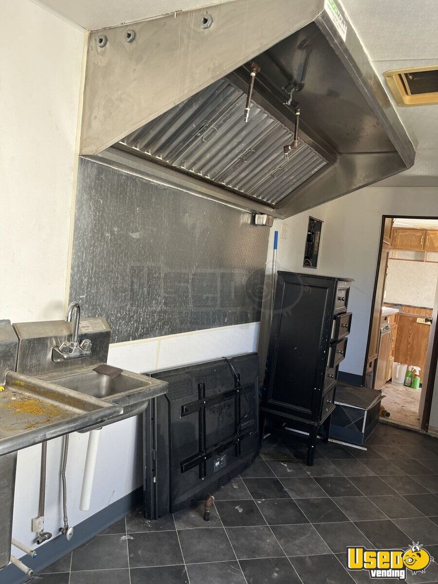 Fully plumbed with live-in quarters in front. A front kitchen with sink, stove, fridge and a bathroom with shower head. A blank slate to start an awesome business! In the back is a new ventilation system, and restaurant sink.