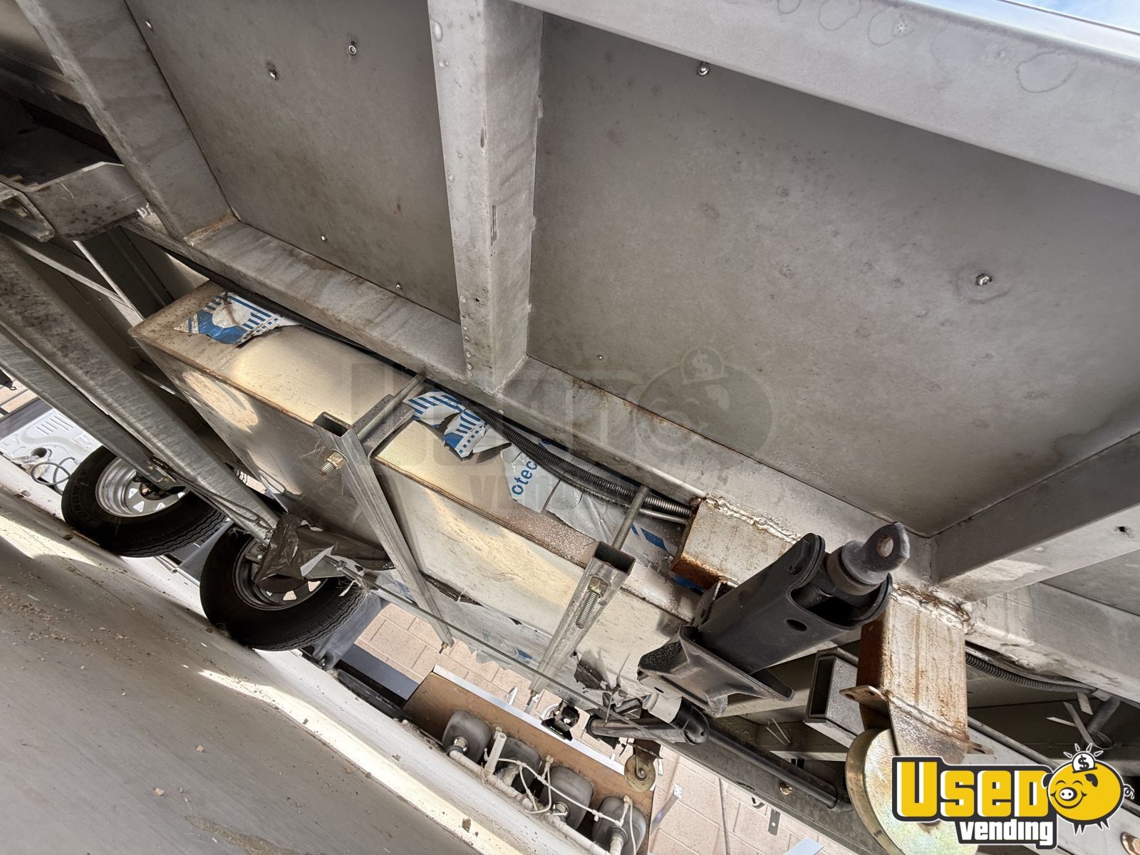Standout features include: - Air conditioning and concession window - Espresso and coffee machines - Stainless steel walls and diamond-plated floor - Generator and refrigerator - Fire extinguisher and work table - Interior and exterior lighting - Full plumbing setup with sinks and tanks