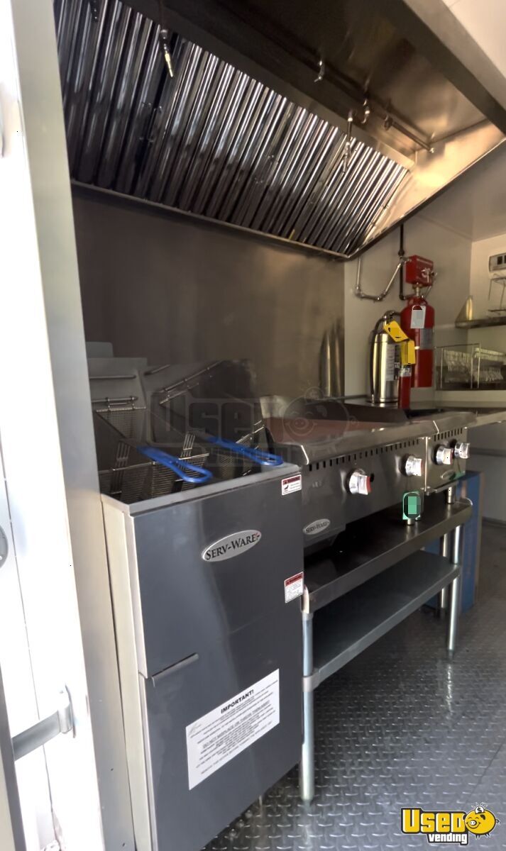 Standout attributes include: - 40 lb fryer, 36" flat top griddle, and 2-burner stove - 7' vent hood with exhaust fan and fire suppression system - 3-compartment sink + hand wash sink with full plumbing - 30 AMP electrical system with interior/exterior lighting - A/C unit, refrigeration, and stainless interior walls - 5 ft serving window and diamond plate flooring - Valid license and turnkey operation
