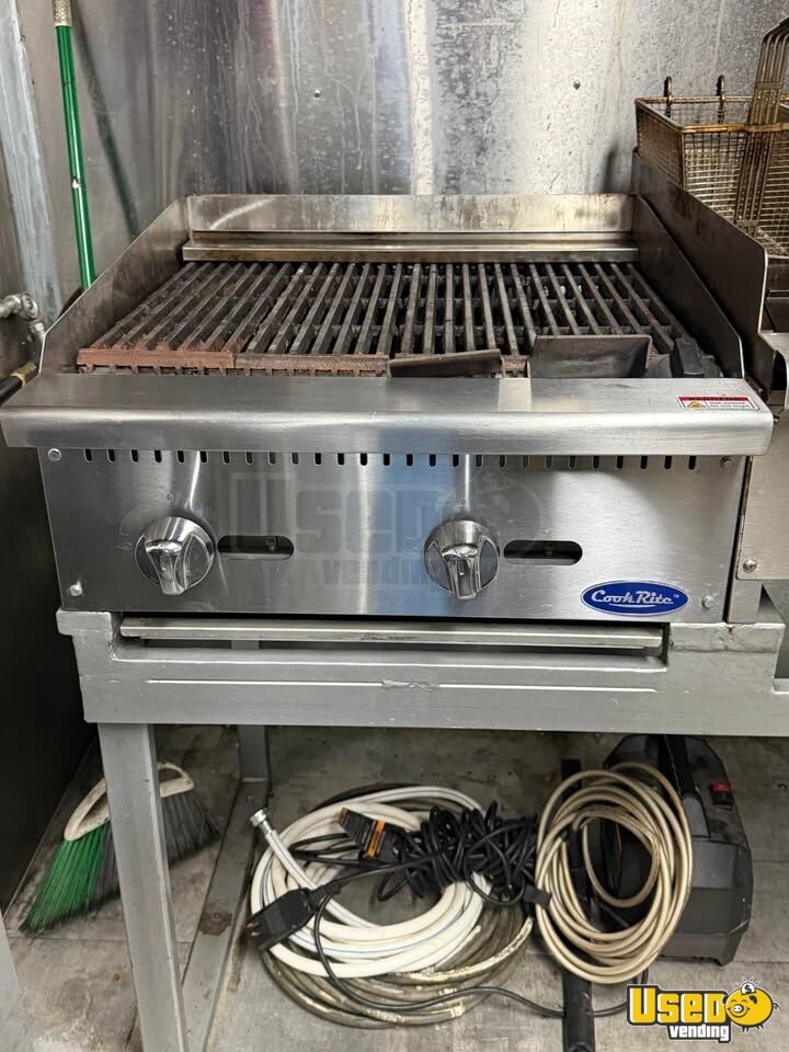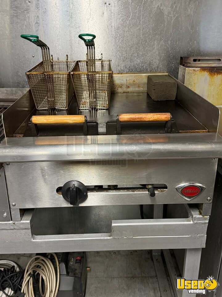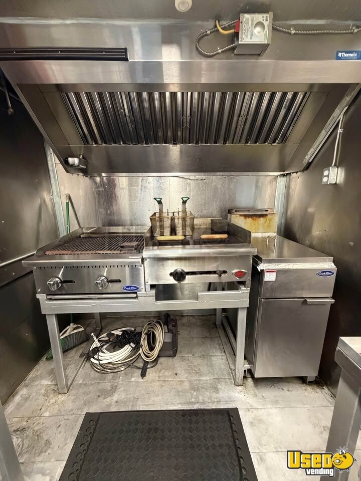 Standout features include: - True refrigerator and prep station cooler - Chargrill, flatgrill, and fryer setup - Exhaust hood with fire suppression - Triple and hand-washing sinks - Interior lighting and electrical outlets