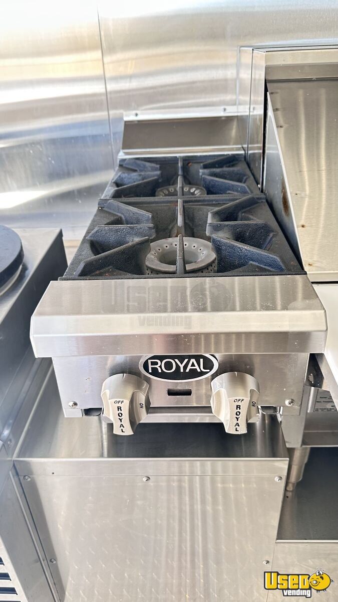 Barely used and meticulously maintained, it features a fully stainless-steel interior, aluminum diamond-plated floors with coved edges, professional electrical, plumbing, and propane installation, and an 8’ Captive Aire Econ-Air hood with exhaust and ventilation system.