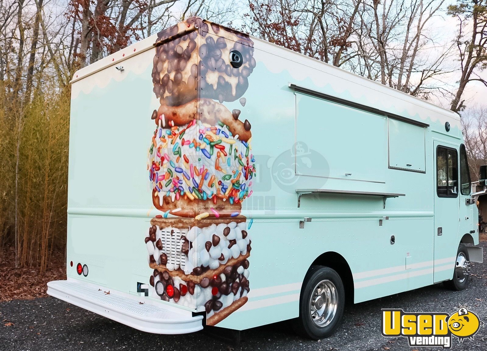 Originally designed as a high-volume ice cream truck, this unit is an excellent multi-use platform. With its commercial diesel generator, refrigeration, stainless-steel interior, and full electrical/plumbing infrastructure, it can be easily and cost-effectively converted to nearly any food or beverage concept.