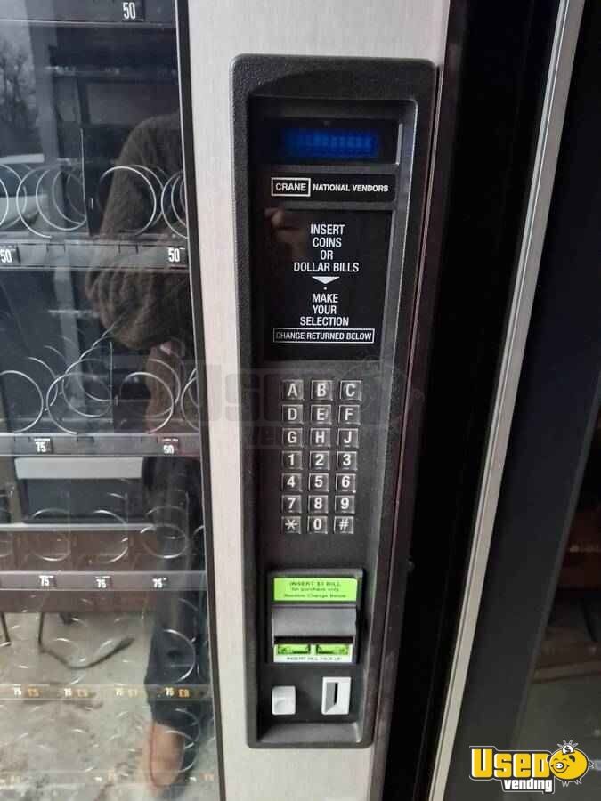 Reliable and durable Crane National Vendors snack vending machines, each with 40 product slots. Machines are in good working order and have been well maintained. Ideal for offices, schools, or high-traffic areas. Each unit comes with keys and accepts dollar coins.