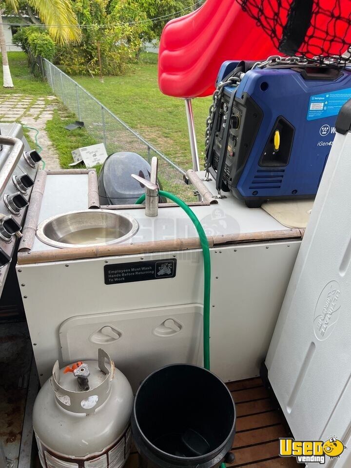 The unit is ready to sell food as a food boat with the appropriate license and also for charters (either saltwater or freshwater charters). It can also be transformed into a food truck and operate over its trailer in any location. It is extended to approximately 27' when 4 tubes are installed. This licensed food boat stands 6.5' high on the inside and is featuring a 2021 interior with only 6 months of usage!