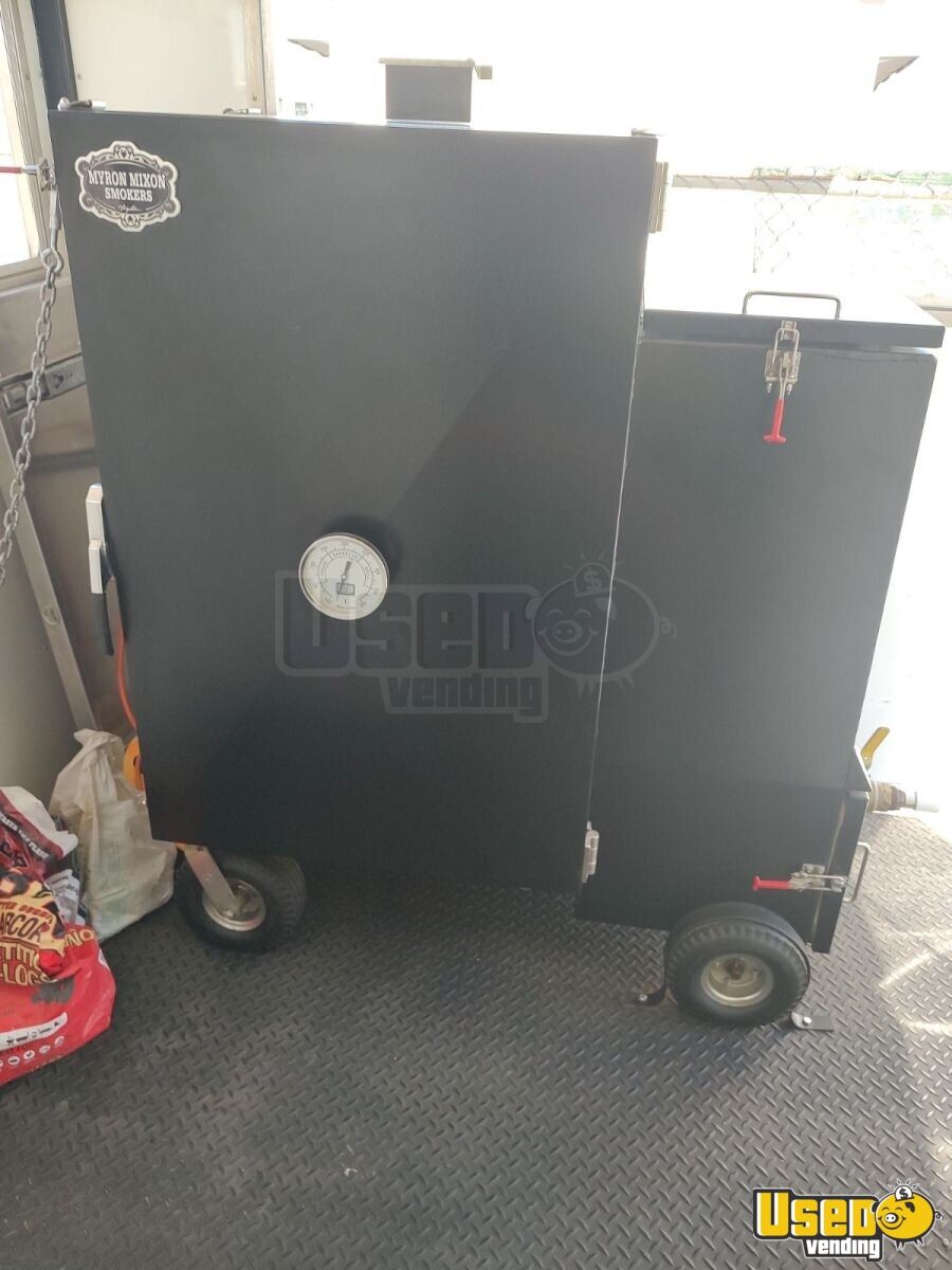 Want to roll out the BEST smoked BBQ in town? This gently used kitchen trailer is the answer! Equipped with a professional grade Myron Mixon 33 gravity smoker, it ensures superior smoked flavor and consistent results every time. Whether you're serving up brisket, ribs, or pulled pork, this trailer has what you need to impress your guests. Don't miss out on this amazing offer and give us a call now!