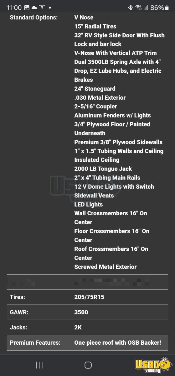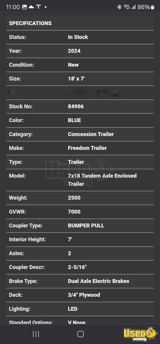It is 7000 lbs, and the trailer has tandem axles *2 powerful generators: 1800 peak watt which is loud, but also a 11,700 peak watt quiet generator. Square terminal and Stand with receipt printer.