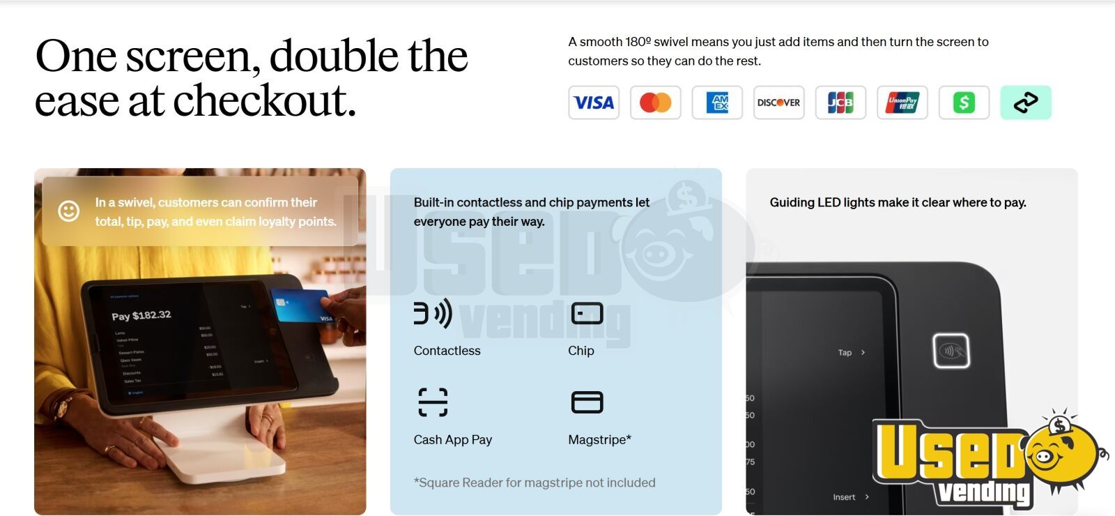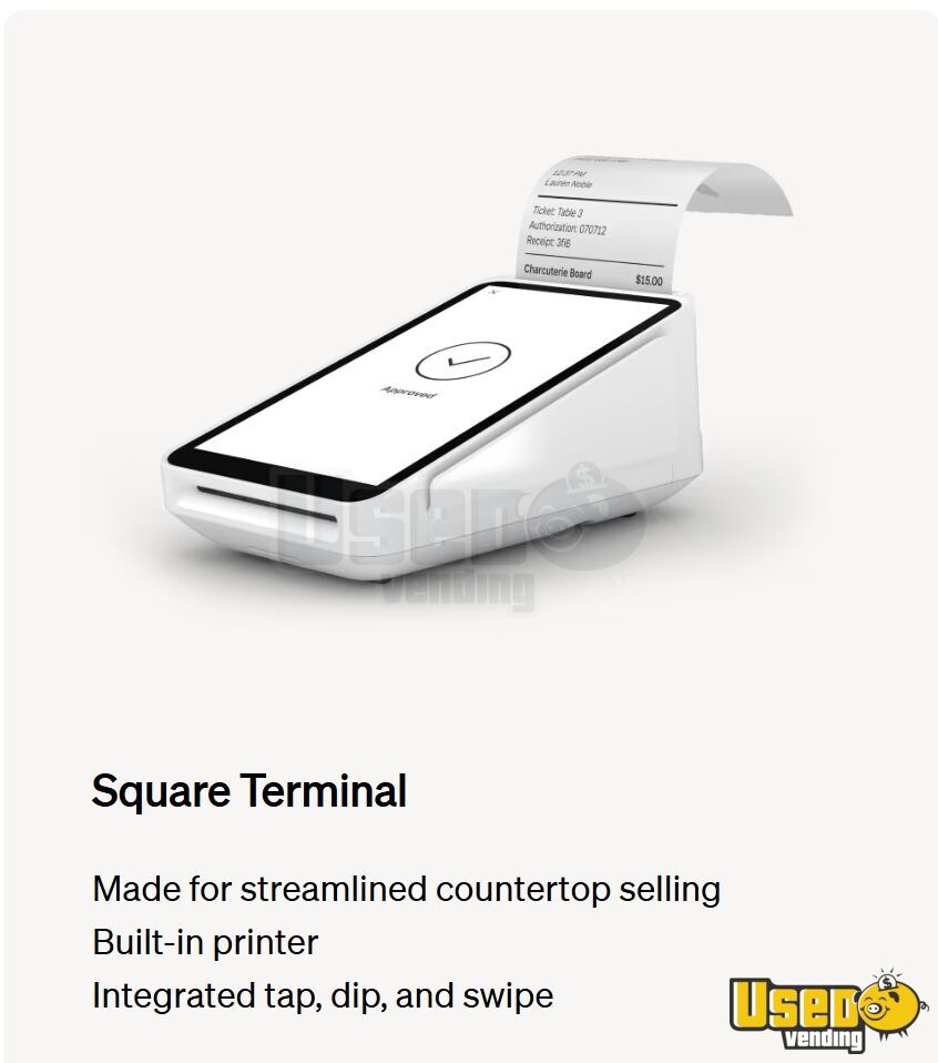 - POS System: Square terminal and stand with receipt printer