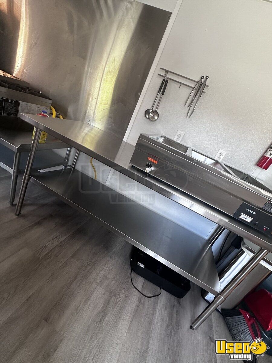 Looking to kickstart your food business or upgrade your setup? Feast your eyes on this uniquely crafted, wood-framed kitchen food trailer. This trailer is a true statement piece that stands out at any market, festival, or street corner. It is roomy enough to house all your kitchen equipment with plenty of space for you to work your magic. Take advantage of this great find by calling us today!
