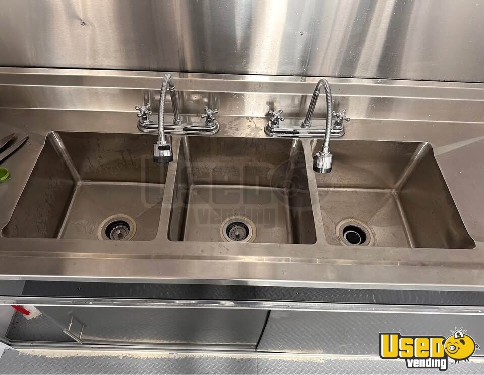 - Full plumbing setup with triple sinks and hot water heater