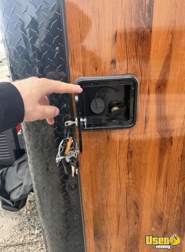 This concession trailer is an ideal setup for serving coffee, shaved ice, or other beverages. Lightly used and freshly built, it features a wood exterior finish and a commercial grade interior ready for immediate operation. Need to know more? Call us now!