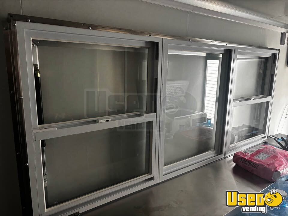 This concession trailer offers a clean, functional setup designed for smooth food service operations. Equipped with a large 6’ serving window, stainless steel prep area, and efficient layout, it’s ideal for anyone ready to start or expand their mobile business. Call today to learn more!
