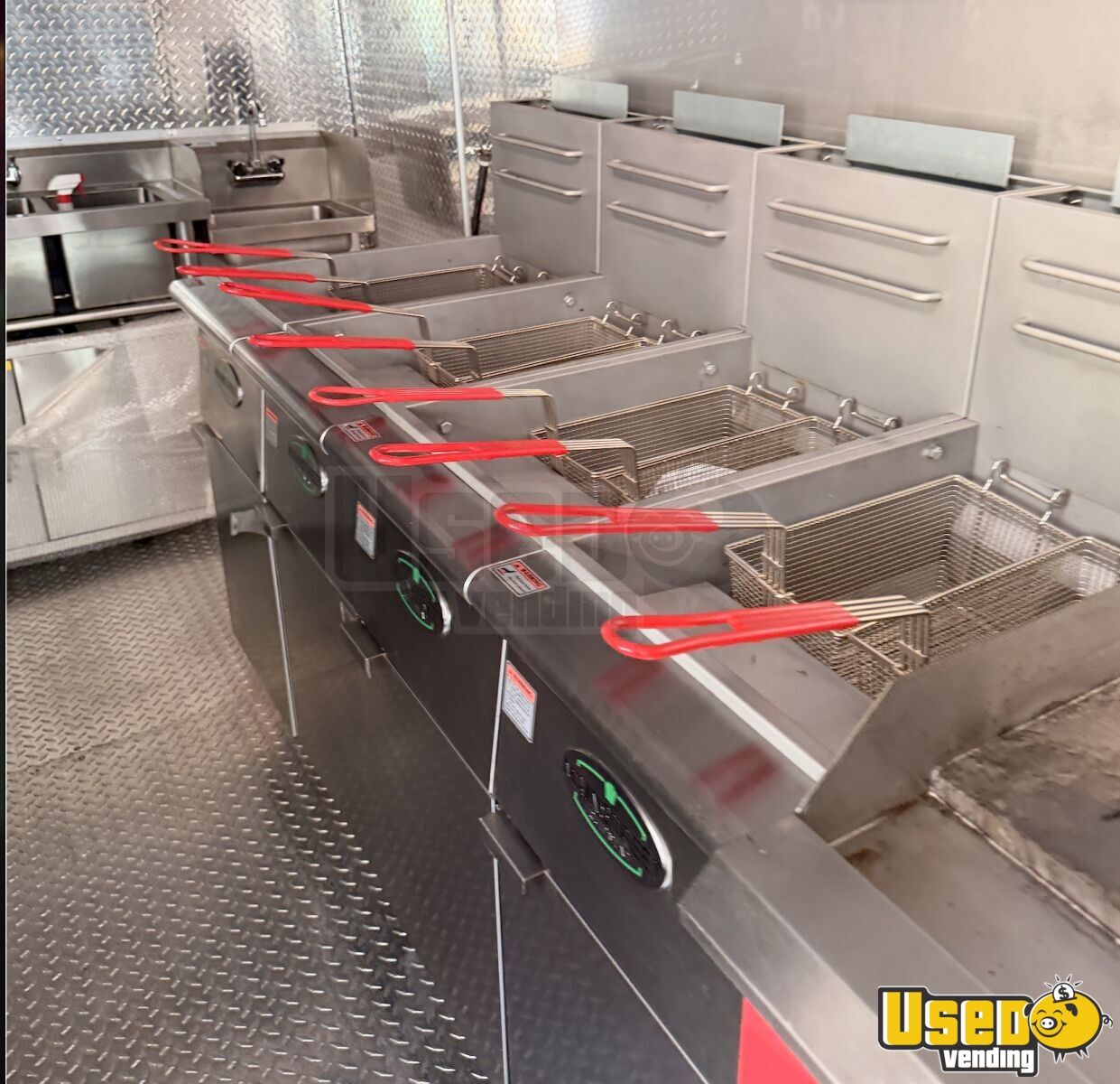 Standout attributes include: • Fully equipped stainless steel kitchen with 16-ft exhaust hood • Four fryers, two ovens (including Vulcan Pro convection), stovetop, and flat grill • Multiple refrigerators and freezers for ample cold storage • Dual generators, LP gas setup, and shore power connection • LED lighting, surveillance cameras, and backup camera for safety • Triple sink, tankless water heater, and Pro Fire Suppression System for compliance • Fold-down exterior counters and large menu monitor for customer service