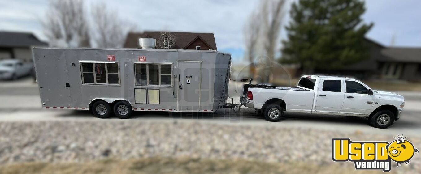 This turnkey food concession trailer with truck offers a professional-grade mobile kitchen ready for high-volume service. The 28' Lark enclosed trailer and included 2011 Ram 3500 diesel create a complete setup perfect for fairs, festivals, and events of all sizes.