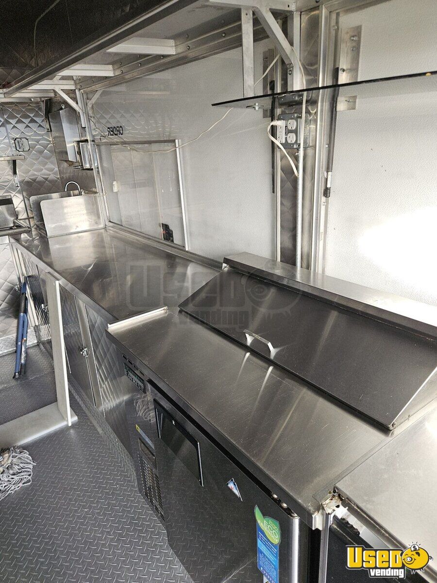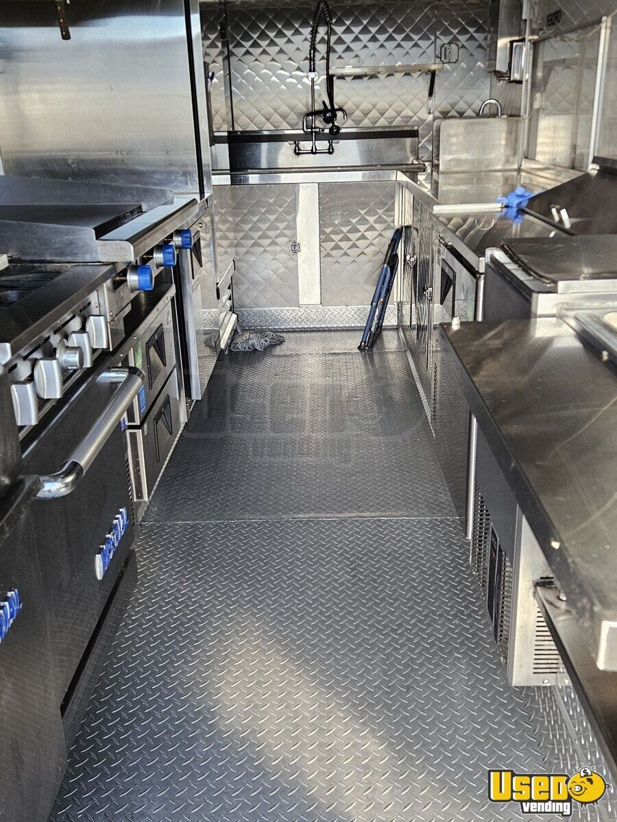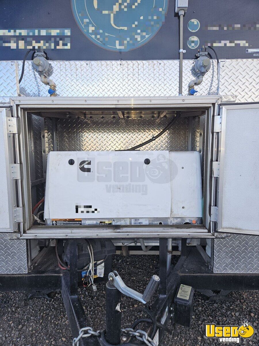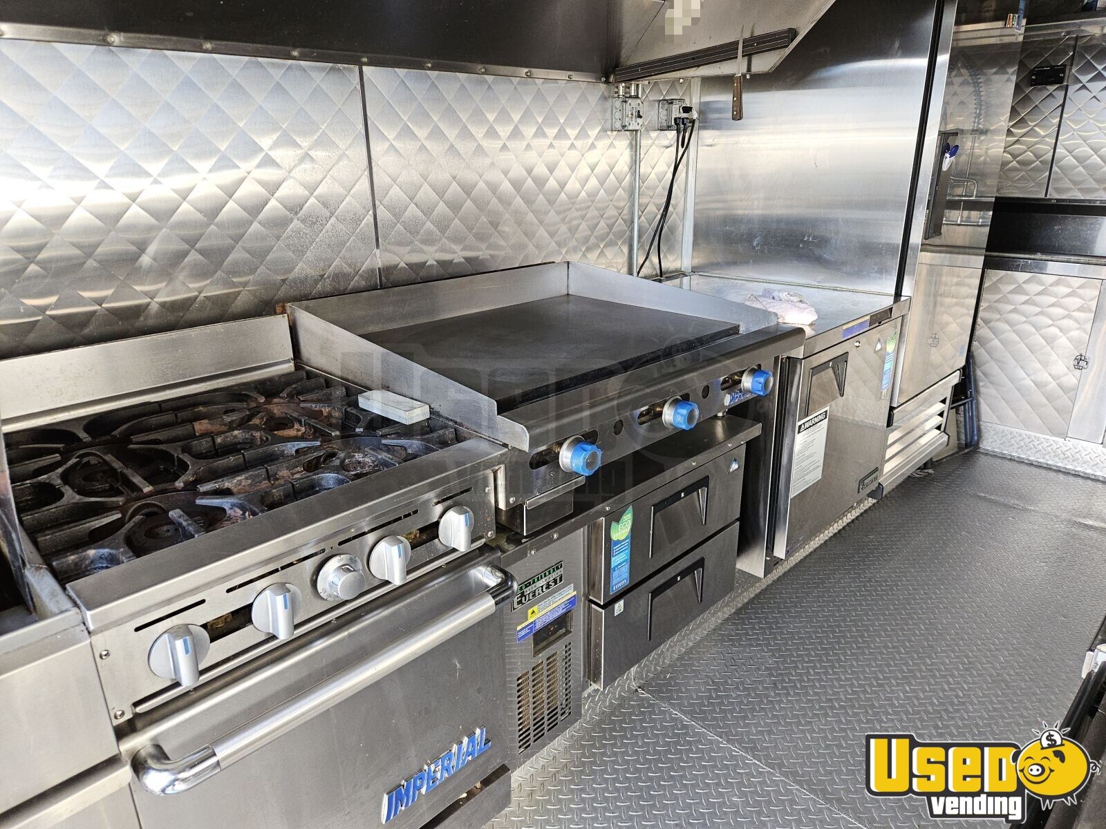 Standout features include: - 36" griddle, 40lb fryer, and 4-burner stove with oven - 2-well steam table, prep sinks, triple sink, and handwash sink - Refrigeration suite with upright and under-counter units - 8' hood with exhaust fan and Amerex suppression system - 65KW Cummins propane generator and dual 100lb tanks - All stainless steel interior with diamond plate floor and A/C