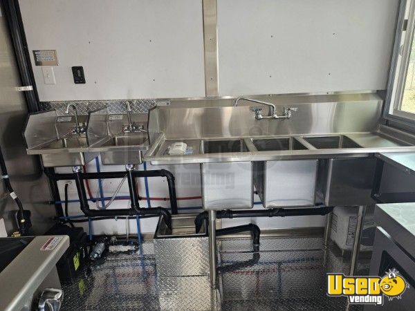 This 2023 kitchen food trailer is fully equipped and shows limited use, offering a dependable setup for a wide range of food operations. It features a sturdy steel and fiberglass body with a complete kitchen exhaust and suppression system, ensuring efficient and compliant cooking performance.