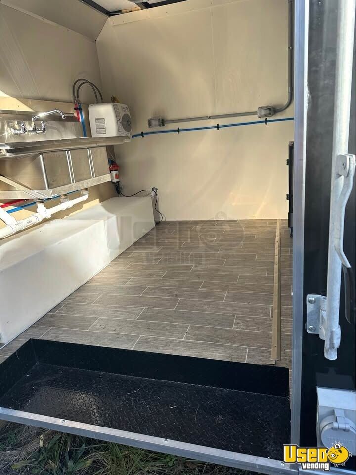This trailer is outfitted to run electric appliances with a generator but can easily be changed to add equipment of your choosing. All electric done by certified electrician and done to compliance. All plumbing done with required systems by master plumber. Flooring is completed, walls painted and equipment wall fitted with aluminum from top to bottom. All equipment was purchased brand new.