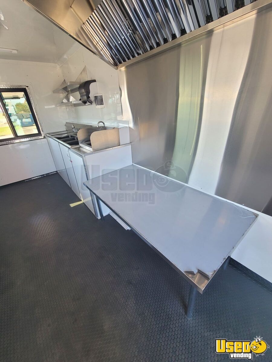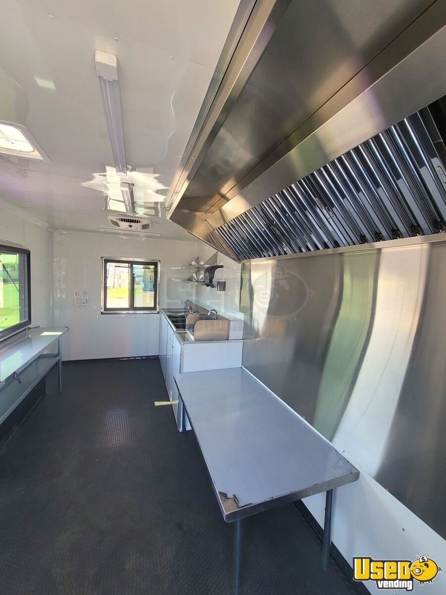 Standout features include: - Two serving windows with awnings and exterior counters - Rooftop A/C - 7-ft exhaust hood and fan - Heavy-duty rubber flooring - Full plumbing with triple and hand sinks - LED lighting and complete electrical setup