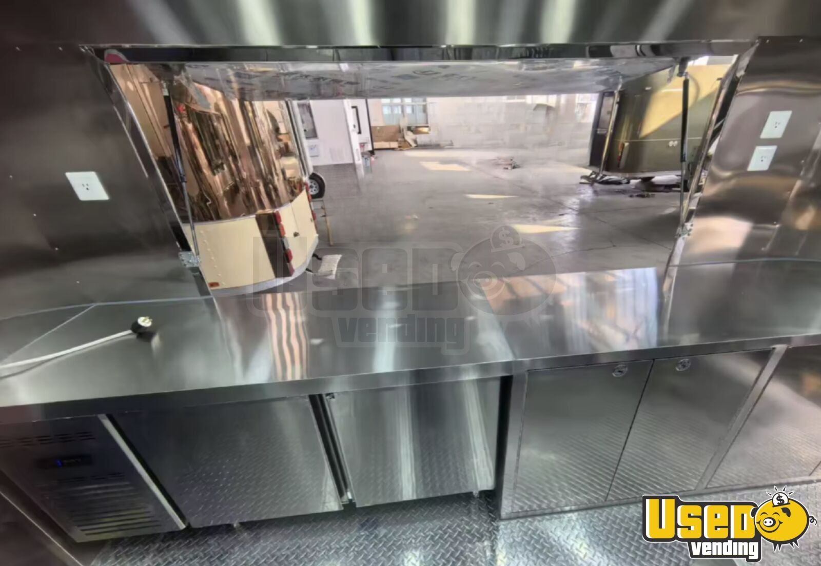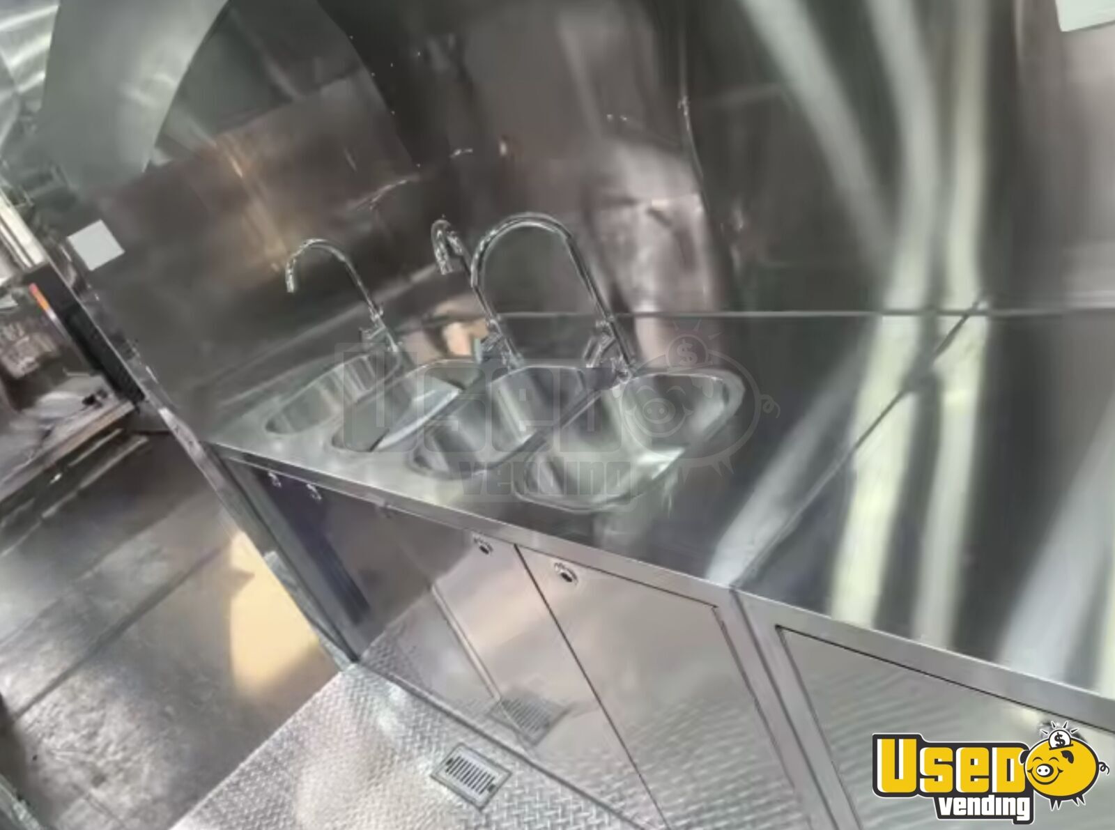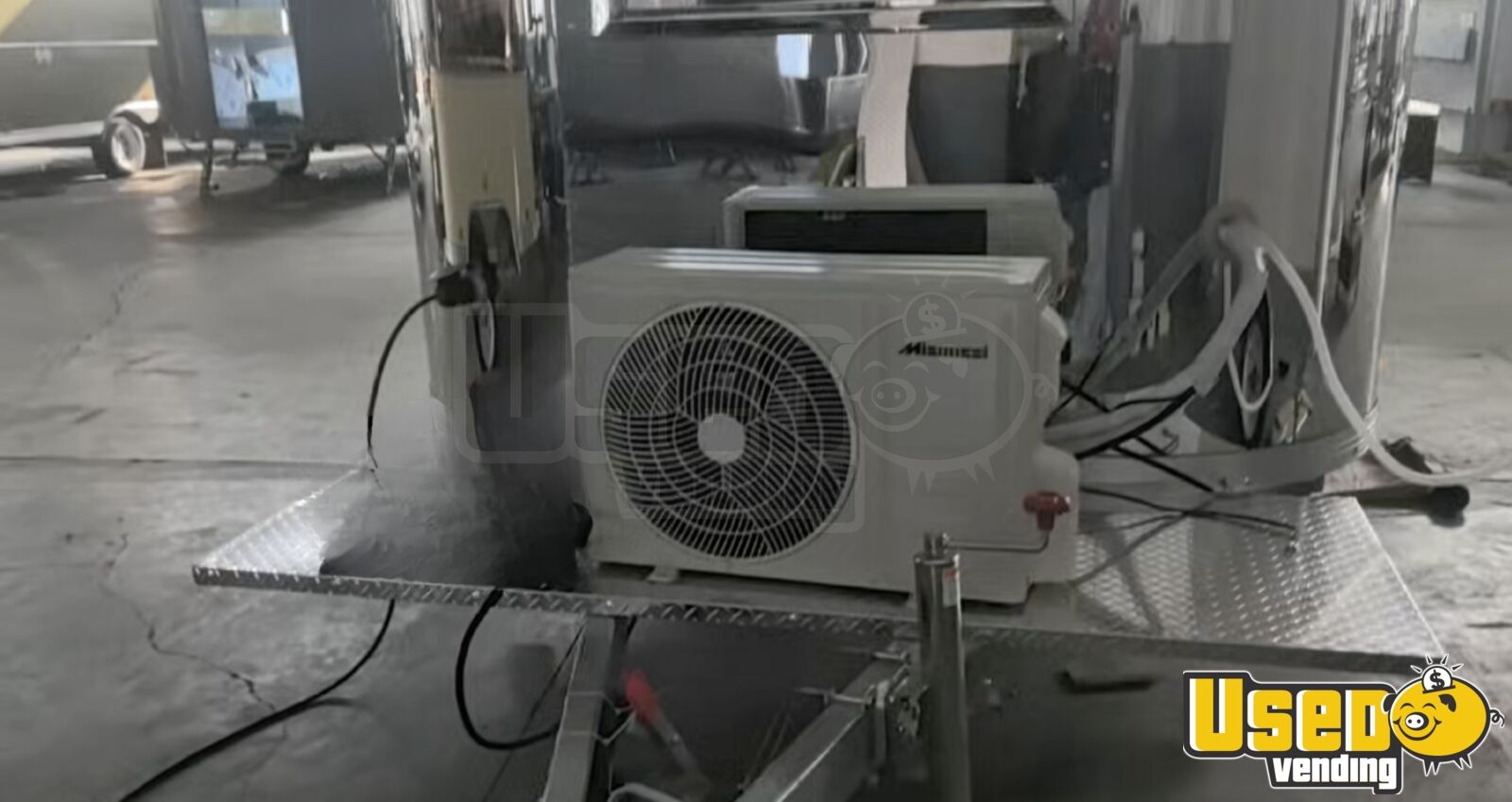 This 13ft Concession Street Mobile Food Trailer delivers a refined combination of style and functionality. Its polished stainless-steel body, bright interior lighting, and efficient workspace design make it ideal for event catering, street food service, or expanding culinary ventures.Standout features include:- Air conditioning with overhead unit- Stainless-steel interior and diamond-plated aluminum flooring- Commercial exhaust hood and fan- Dual freezers and workbench- Triple and handwashing sinks with hot water heater- LED lighting and breaker panel- Spacious prep area and lift-up service window