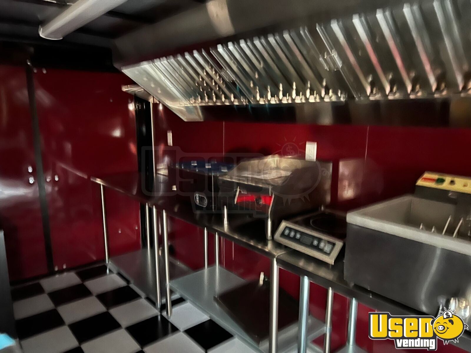 Standout features include: - 7' hood with exhaust fan - 3x5 concession window - Deep freezer and induction burner - 16" flatgrill, double fryer, steam table, and food warmer - Triple sink with 30-gallon fresh and 50-gallon gray water tanks - LED lighting and six outlets