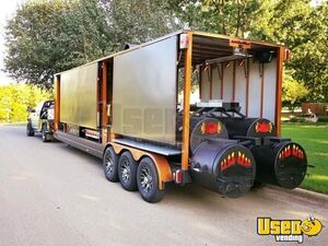 This food trailer is perfect for competition cooking, tailgating, events, or restaurant promotions! Al of its cabinets and work surfaces are covered with stainless steel. The Kicker Marine sound system includes a source unit with Bluetooth, Marine amplifiers, Marine subwoofers, and 8 tower system, speakers. Act fast and grab this unit now while it's still available for purchase!