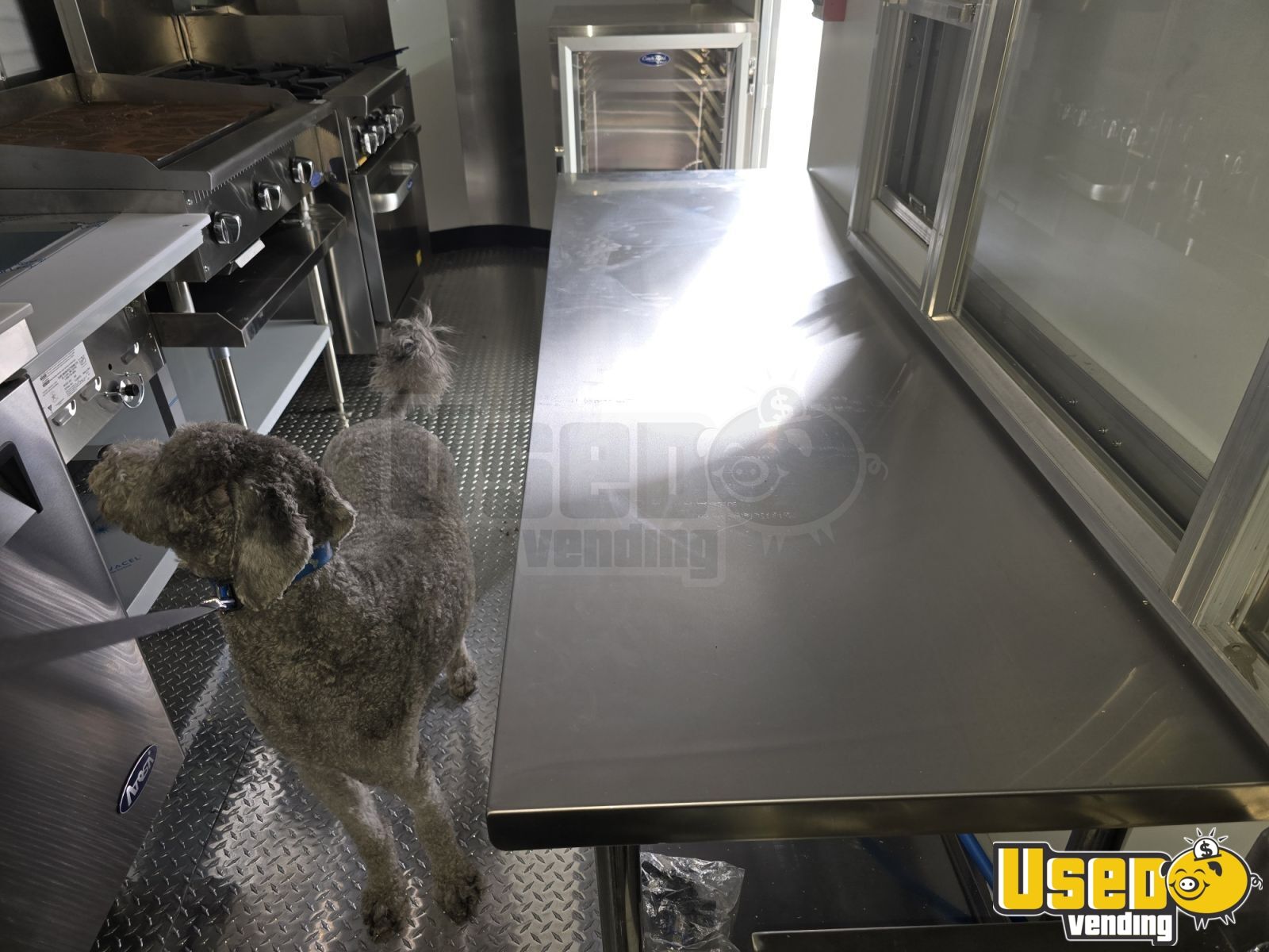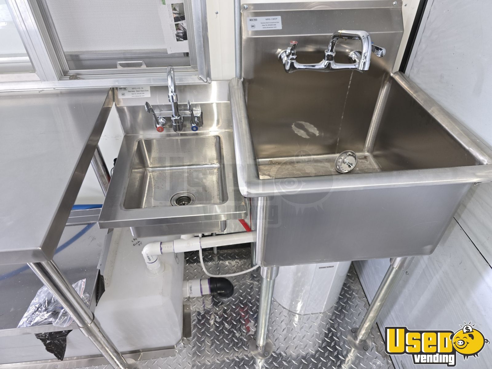 - Stainless steel walls and diamond plate flooring