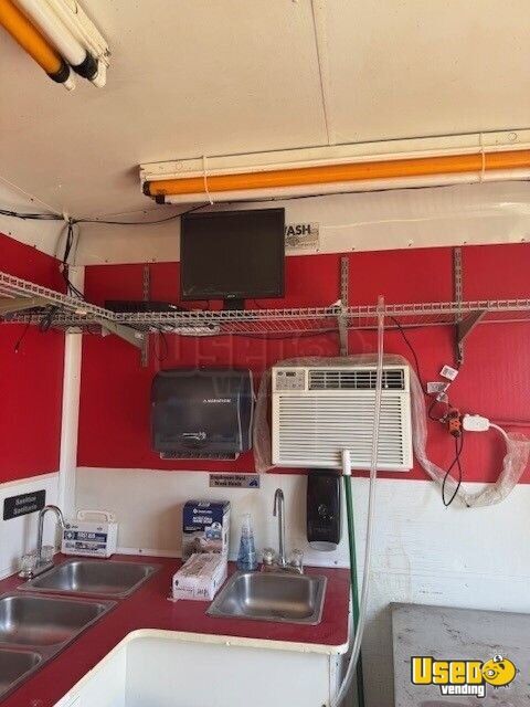 The trailer has minor wear, including scratches on the exterior, slight cabinet damage, and a window A/C unit that should be replaced. A fresh wrap will enhance its presentation, but it remains fully functional and profitable as is.