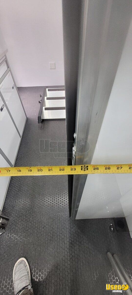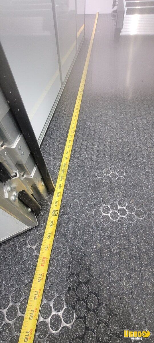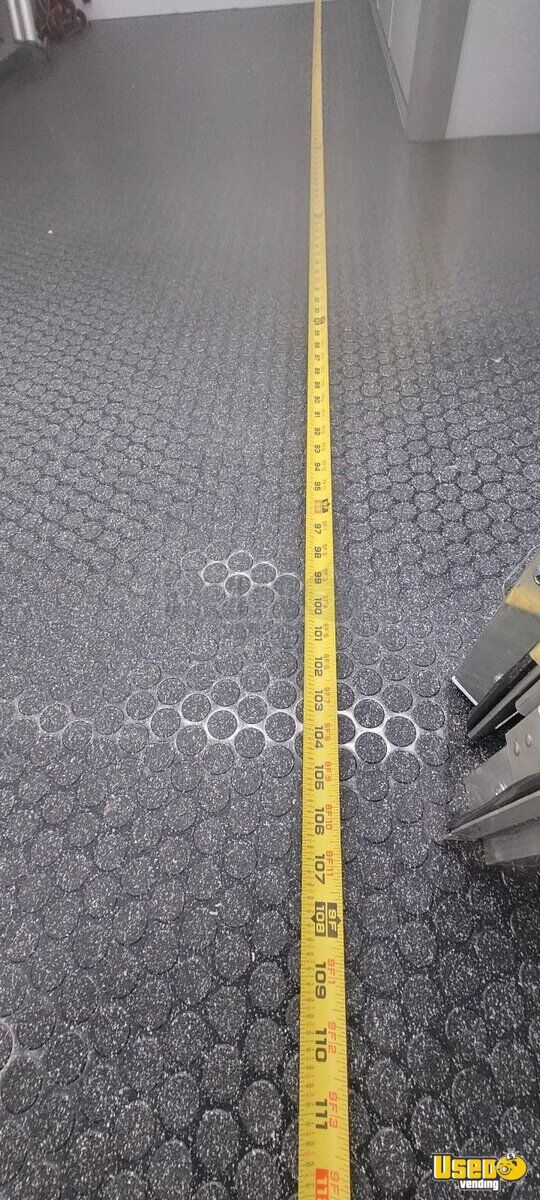 The usable inside dimensions are 17.5' long x 5.3' wide; including the space taken up by the fold-down deck, it would be 17.5' long x 7.5' wide. The floor plan is divided into two different exam rooms with a partition wall and door in the middle, so each exam room is 8.75'x5.3'. The partition wall could be removed to make one larger room without much effort.The 17.5' is divided in the middle into two separate exam rooms. So about 8.75'x5.3' usable space per exam room