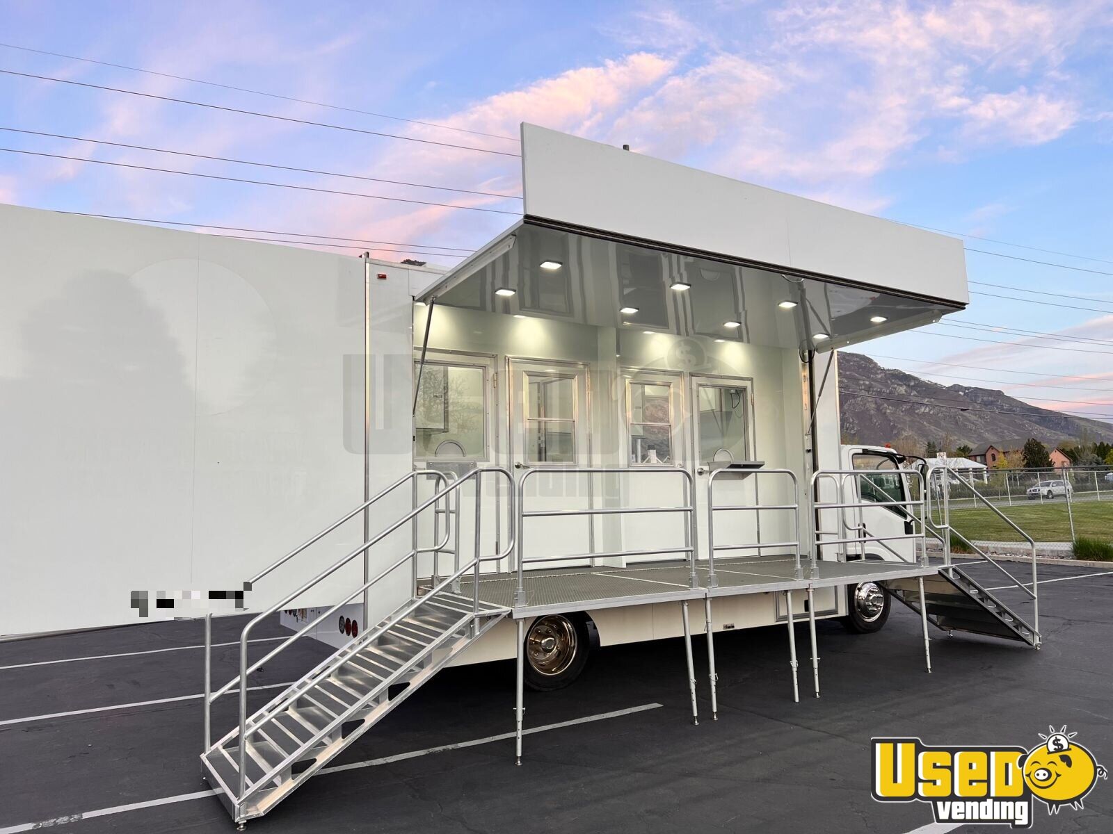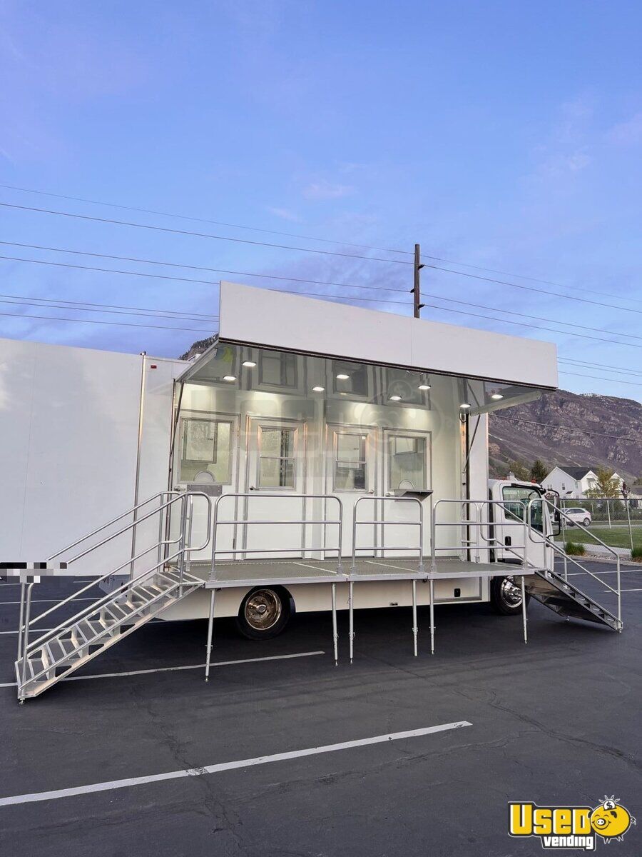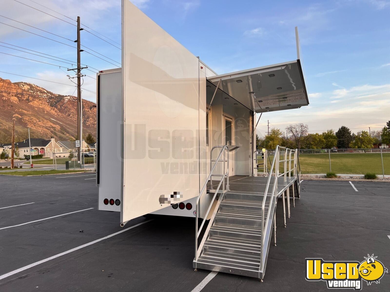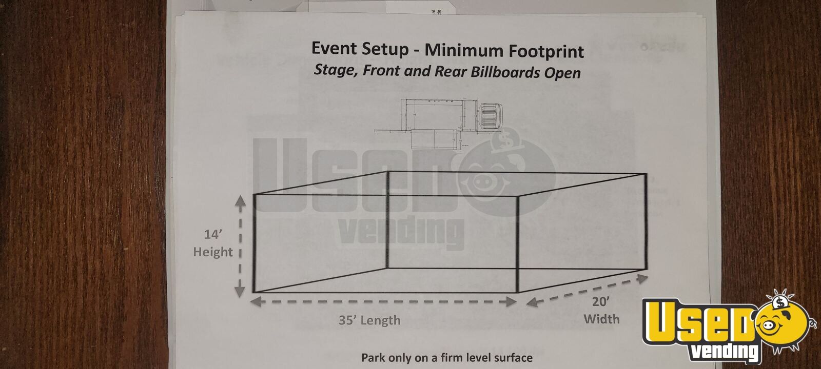 - Fold-up side wall with fold down deck/stage and two sets of stairs. Easy setup.
