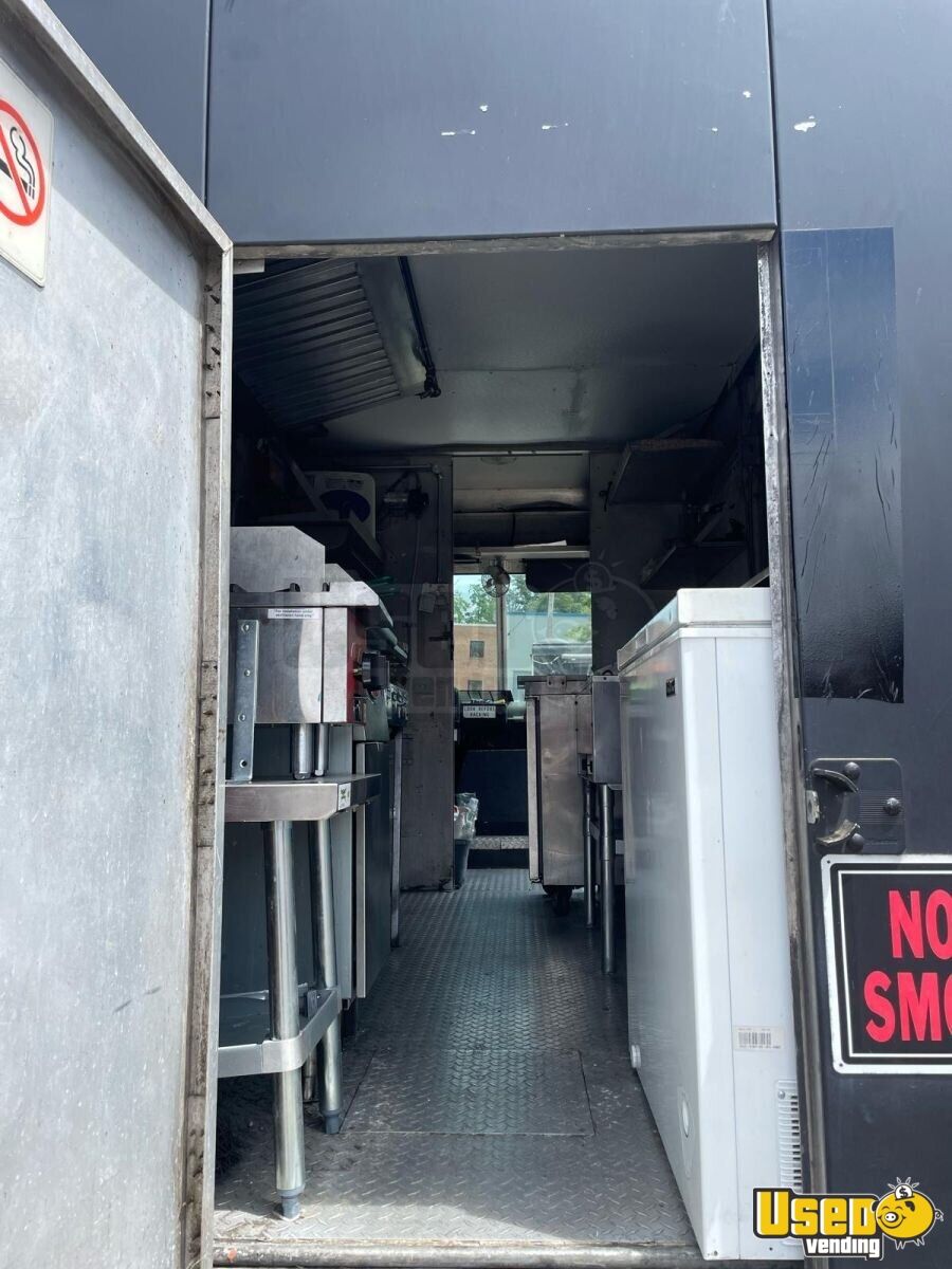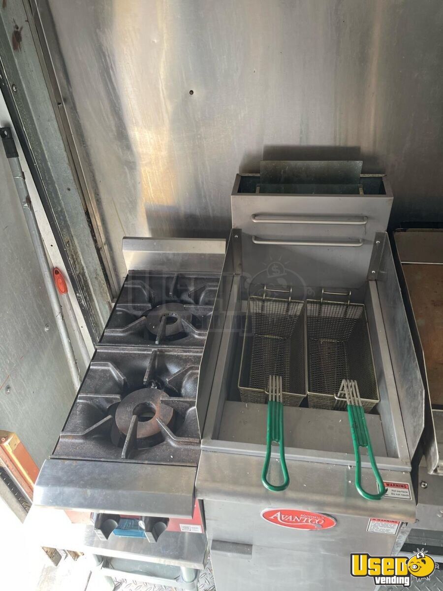 Standout features include: - Flatgrill and 2-burner stovetop - Fryer and steam table - Deep freezer, refrigerator, and prep cooler - Pro fire suppression system - Hot and cold water setup with triple sink - Spacious interior and large concession window