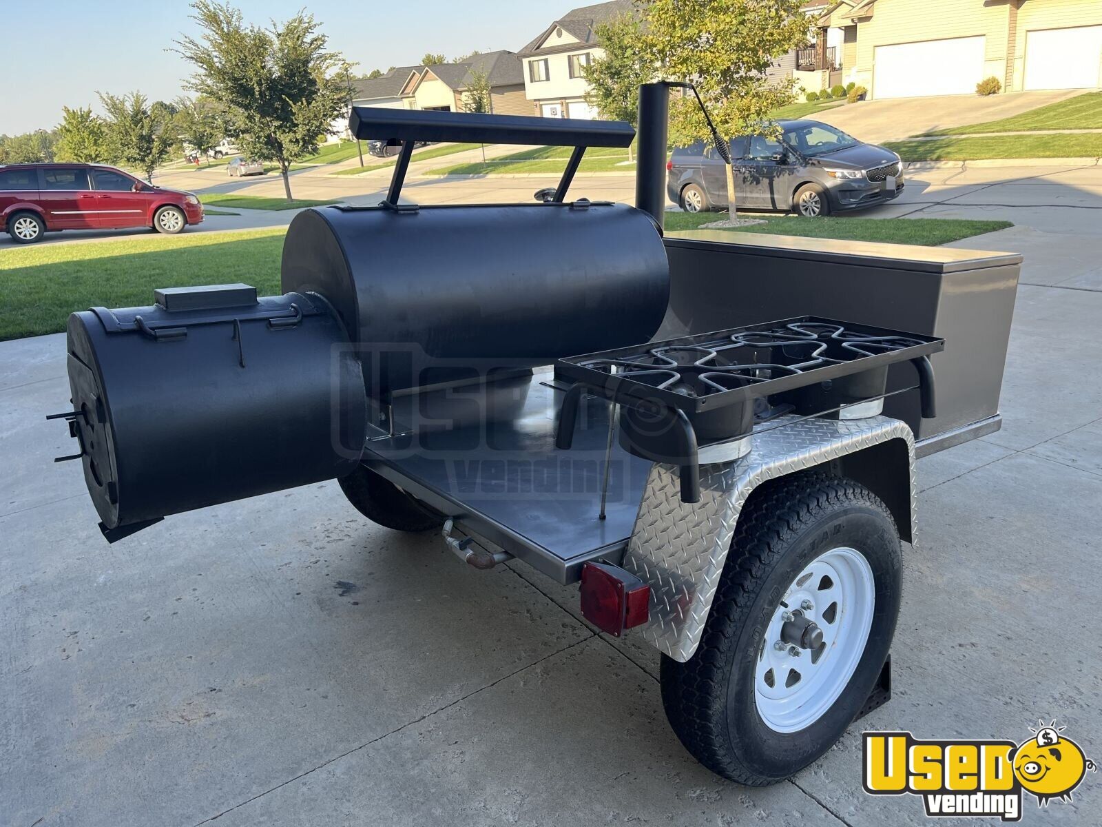 This open BBQ smoker trailer is a durable, custom-built model designed to handle gatherings of up to 40 people. Built in 2012, it remains fully functional and ready for smoking, grilling, boiling, or frying, making it a versatile choice for events, tailgates, or fundraisers. Make it yours by calling us now!
