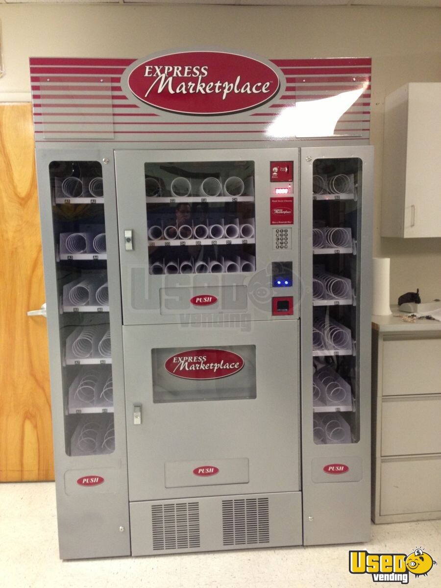 SOLDFor sale in New Jersey- this is a 2011 Seaga Express Marketplace snack, drink, & entree vending machine. Has 50 total selections in 4 units and is in very good condition. See details for specs.
