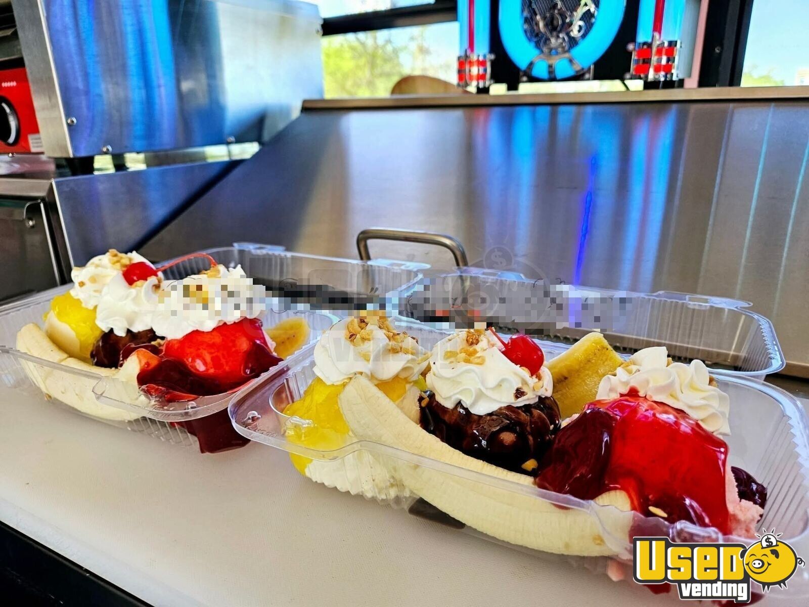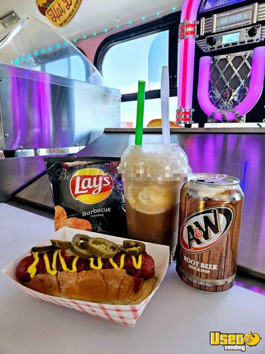 Standout features include: - Predator 9,500-watt generator - RV rooftop A/C and heating unit - Avantco refrigerator, prep table, and dipping cabinet - Galaxy flat top freezer - Hot dog roller, bun warmer, and blender - Nostalgia retro kitchen appliances - POS system with cash drawer and sound setup - New rear airbag suspension and LED headlights