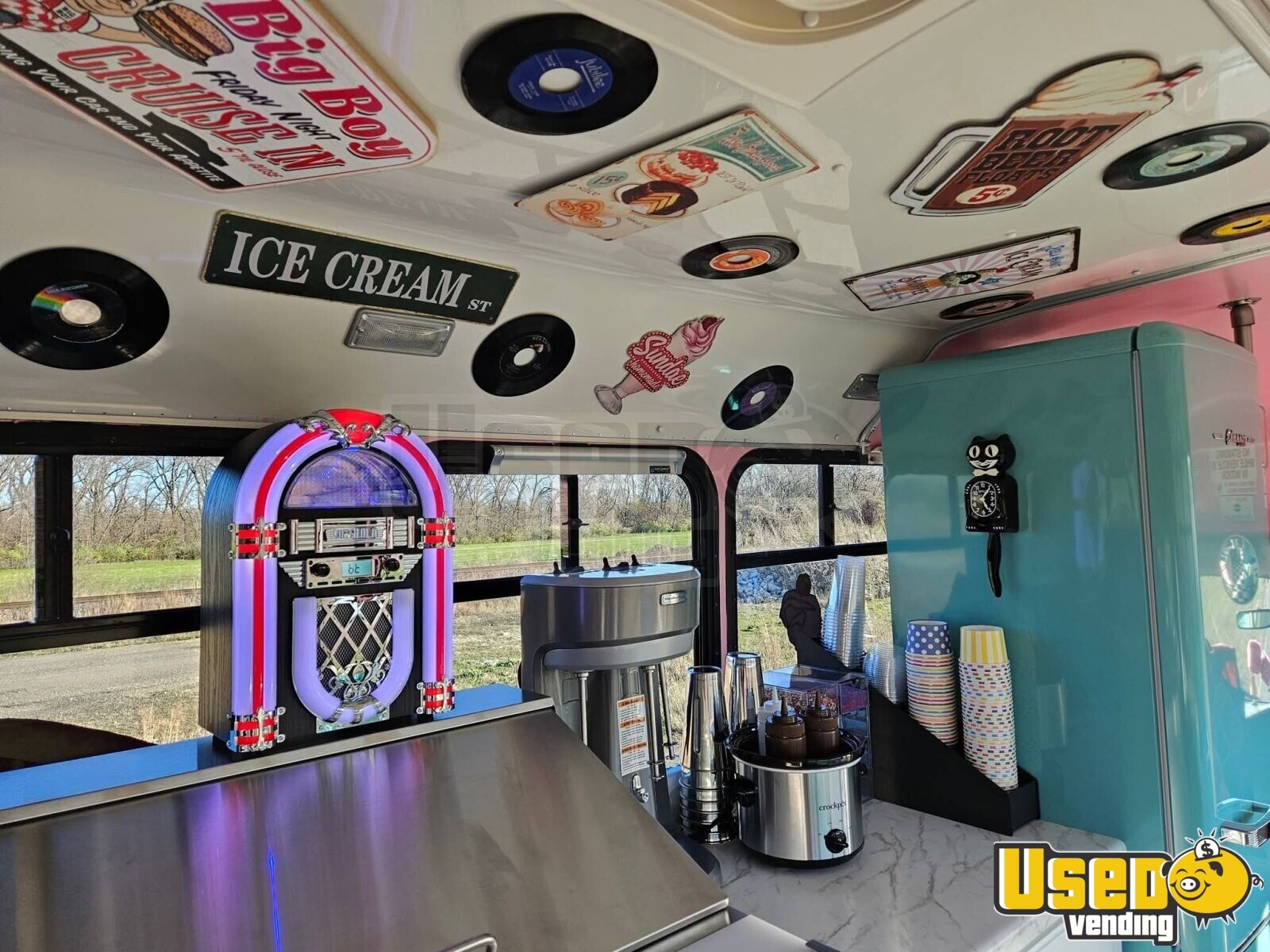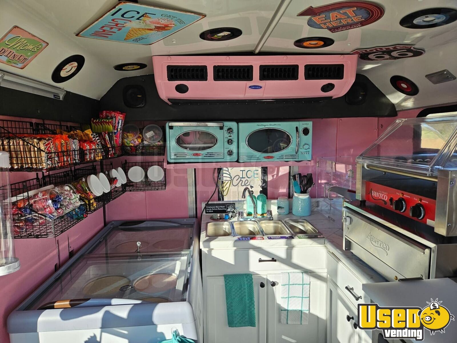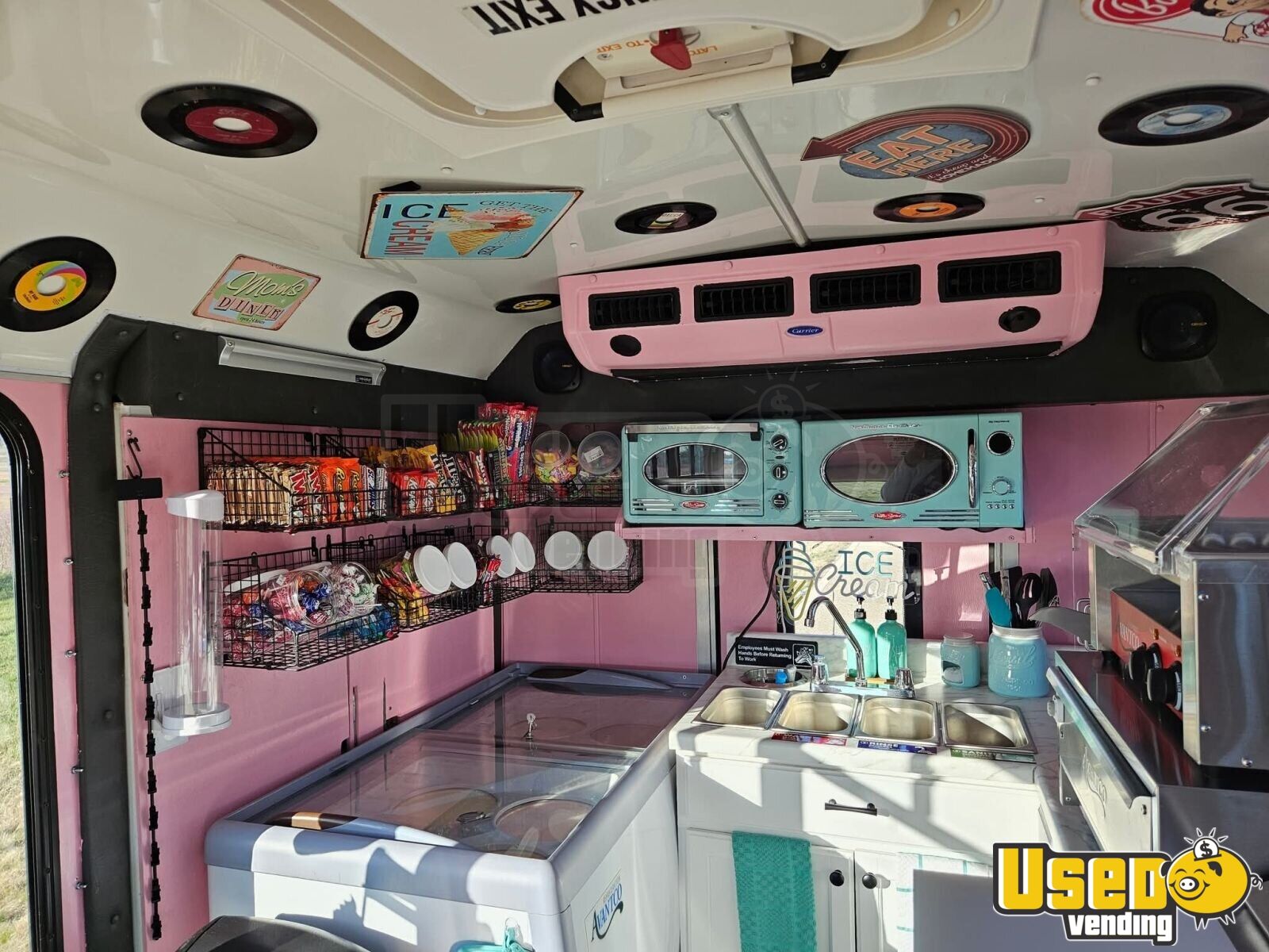 This charming 2006 Ford E350 ice cream truck offers a fully functional, turn-key setup ideal for launching or expanding a mobile kitchen business. Designed in a nostalgic 1950s retro style, it combines classic appeal with modern efficiency and reliability, ready to serve everything from hard-scooped ice cream to hot snacks.
